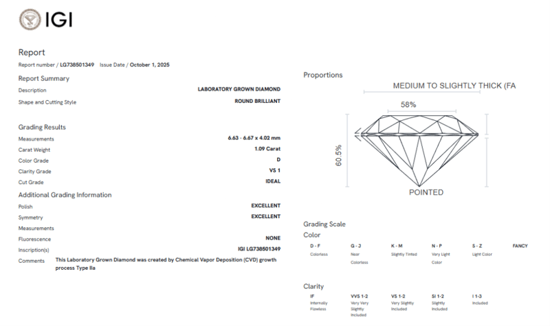PLEASE NOTE: This item may experience a delay in dispatch and can take up to 7–25 business days. Disclaimer: Please note that while all lab grown diamonds listed include certification, the report number or identification may vary upon arrival. This is due to standard manufacturing and batching processes. However, the diamond’s specifications — including carat, color, cut, and clarity — will match or may even exceed those advertised.