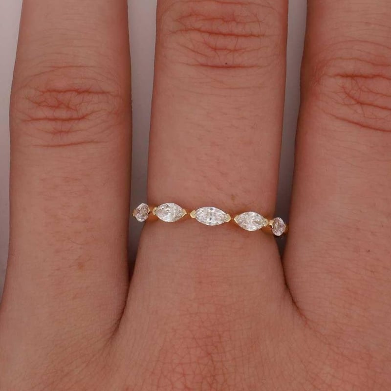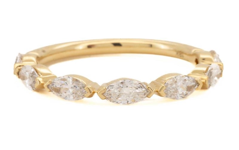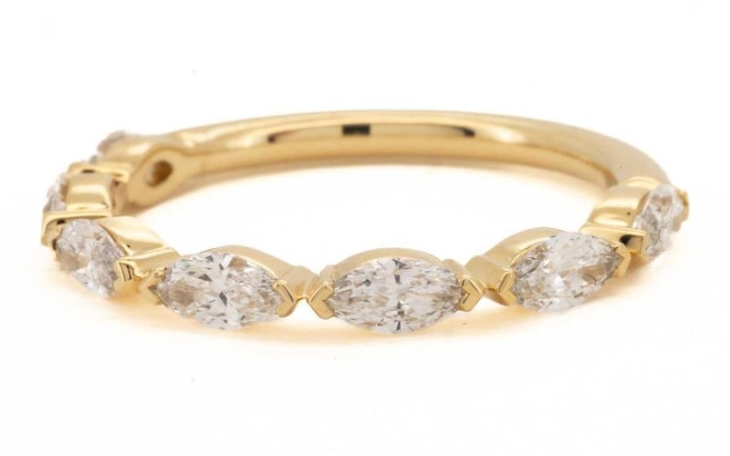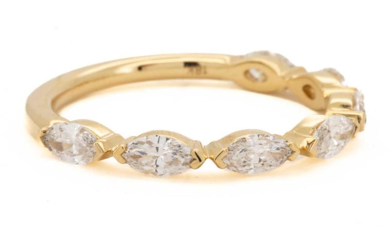 18K YELLOW GOLD DIAMOND BAND 7 Lab Grown Marquise Diamonds = 0.80 Carats F/Vs Finger Size M Ring Weight 2.30 Grams Condition: Good - Refer Images 0160782+10