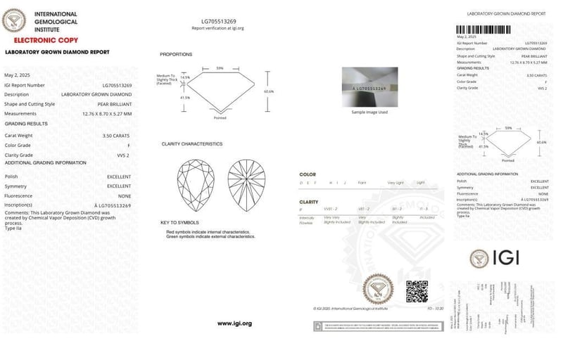 3.50 CARAT PEAR SHAPE DIAMOND F/VVS2 Igi Certificate # Lg 705513269 Laser Inscribed : Labgrown Lg 705513269 Polish : Excellent Symmetry : Excellent Flourescence : None Type : Cvd Condition: Good - Refer Images 0488963+10396