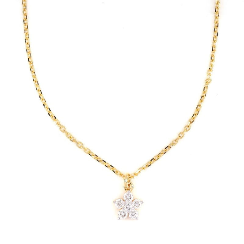 18K YELLOW GOLD 0.37 CT LAB GROWN DIAMOND NECKLACE Total Item Weight: 3.8gms Size: 40-46cms Diamond Color: D-E Diamond Clarity:Vvs-Vs Crafted In 18K Yellow Gold, This Necklace Features A Floral Pendant Made Of 6 Round Cut Lab Grown DiamondsColor Clarity: D-E Vvs-VsTotal Diamond Weight: 0.36 Ct Gross Weight: 3.8 Gms. ApproxNeckalce Size Is Adjustable To 18 Inch And 16 Inch Markings: 750 Condition: Good - Refer Images 0488290+1