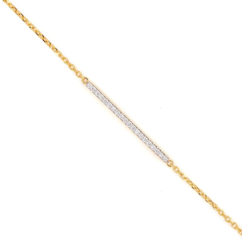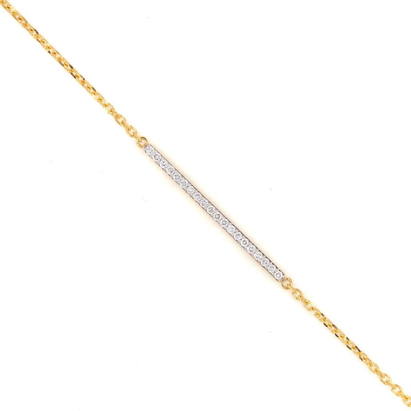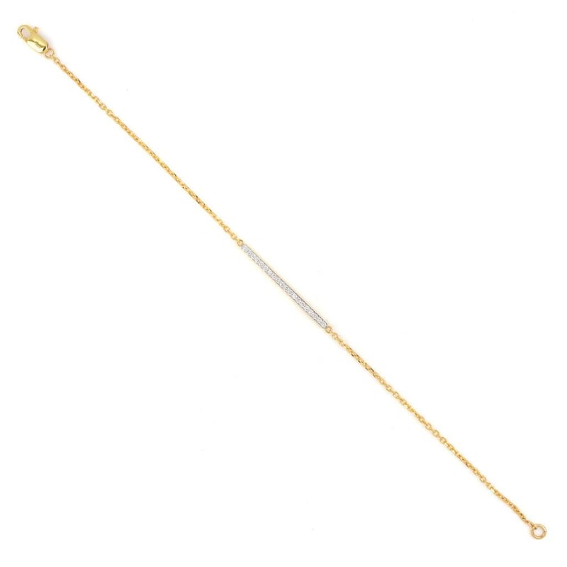 18K YELLOW GOLD 0.22 CT LAB GROWN DIAMOND BRACELET Total Item Weight: 2.5gms Size: 17.8cms Diamond Color: E-F Diamond Clarity: Vvs-Vs Crafted In 18K Yellow Gold, This Bracelet Features A Bar Studded With 20 Round Cut Diamonds Weighing Approx. 0.22 Ct With A Lobster Clasp.Gross Weight: 2.5 Gms.Length: 7 Inches (17.8 Cm) Markings: 750 Condition: Good - Refer Images 0488290+7