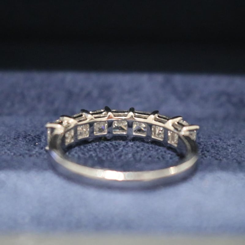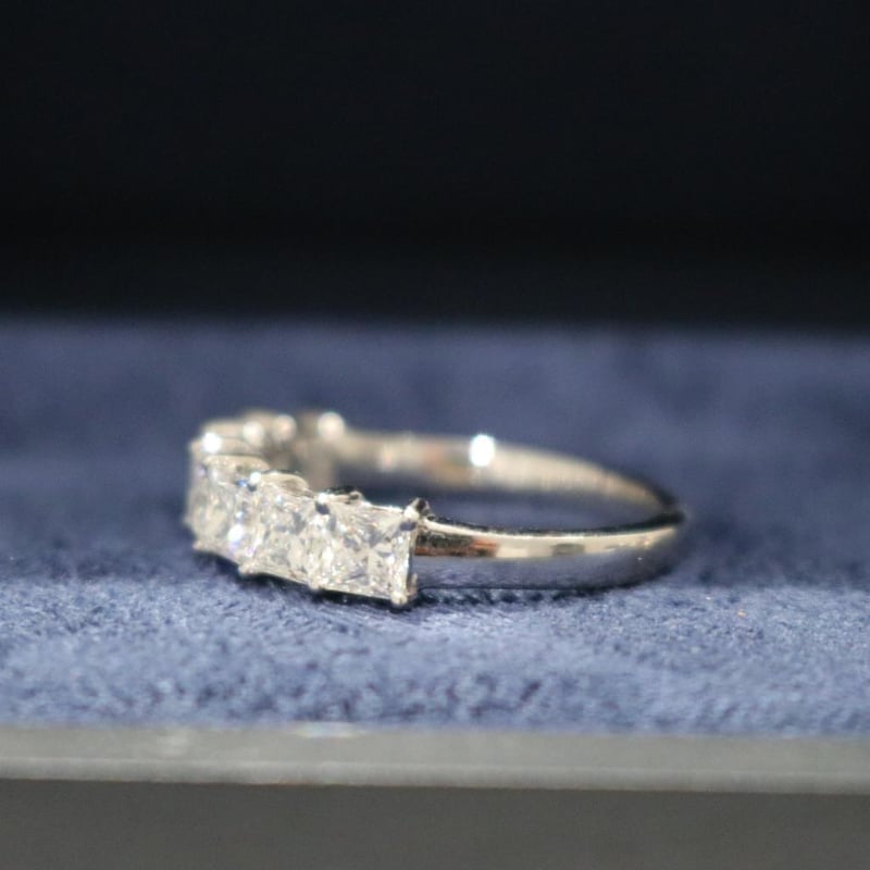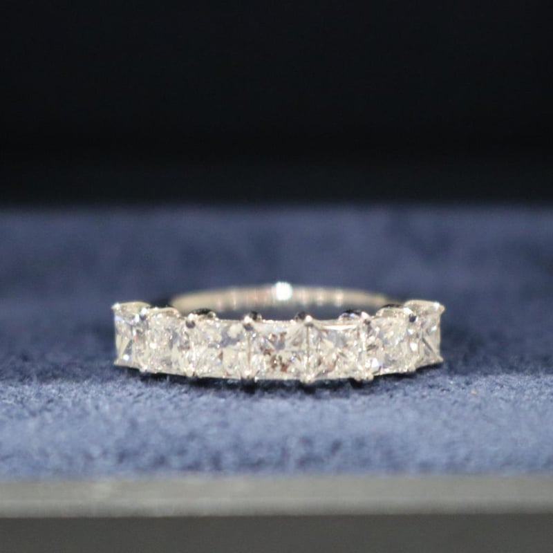 18K WHITE GOLD PRINCESS CUT LABGROWN DIAMOND BAND Total Item Weight: 3.1gms Diamond Color: E-F Diamond Clarity: Vvs-Vs This Luxuriousband Features 7 Princess Cut Labgrown Dimaonds Weighing 1.87 Ct With E-F Color And Vvs-Vs Clarity. Crafted In 18K White Gold, This Ring Offers A Striking Blend Of Brilliance And Modern Elegance. Diamond Size 3.5MmBand Width: 5.2MmRing Size: M (Aus / Nz), 6 ( Us / Can) Markings: 750 Condition: Good - Refer Images 0488290+9