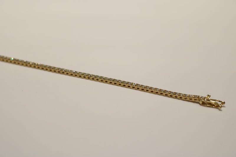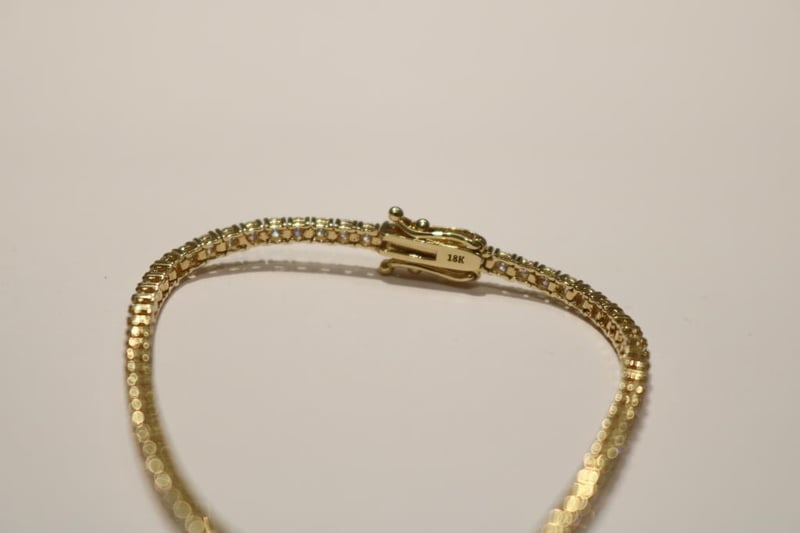 18K YELLOW GOLD TENNIS BRACELET WITH 3.16 CT LAB-GROWN DIAMONDS Total Item Weight: 8.53gms Size: 17.8cms Diamond Color: E-F Diamond Clarity: Vvs-Vs A Luxurious 3.16 Ct Tennis Bracelet With A Box Clasp And Double Safety Latch. Adorned With 74 Meticulously Set Round Lab-Grown Diamonds Set In 18K Yellow Gold. With A Gross Weight Of 8.53 Grams, This Bracelet Exudes Elegance And Brilliance.Diamond Quality: Vvs-Vs, Color EfDiamond Size: 2.2 MmLength: 7 Inch (17.78 Cms)Perfect For Adding A Touch Of Glamour To Any Outfit. Condition: Good - Refer Images 0488290+18
