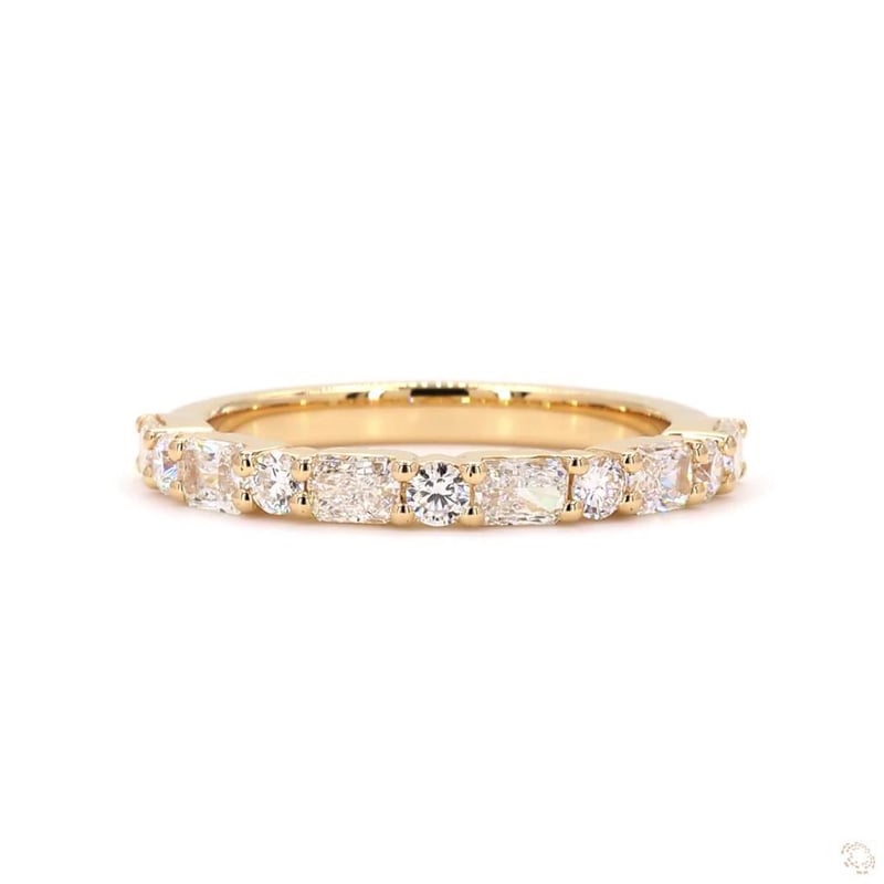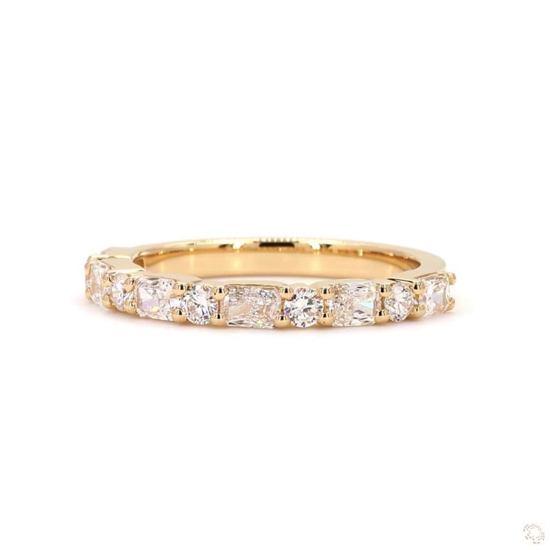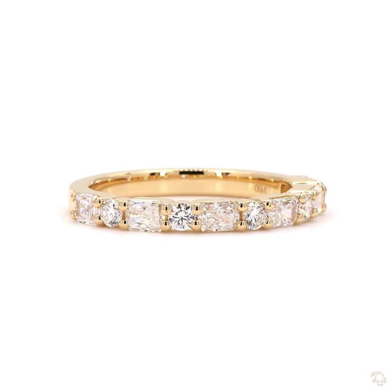 18K YELLOW GOLD 1.12 CT LAB GROWN DIAMOND BAND Total Item Weight: 3.52gms Diamond Color: E-F Diamond Clarity: Vvs-Vs Crafted In 18K Yellow Gold, This Half Eternity Band Features 11 Diamonds(Round Cut And Radiant Cut) Weighing Approx. 1.12 Ct.Width: 2.5 MmGross Weight: 3.52 Gms.Ring Size: N 1/2 (Au/Nz), 7 (Us/Ca) Markings: 750 MarkedCondition: NewEG: 654320 +34
