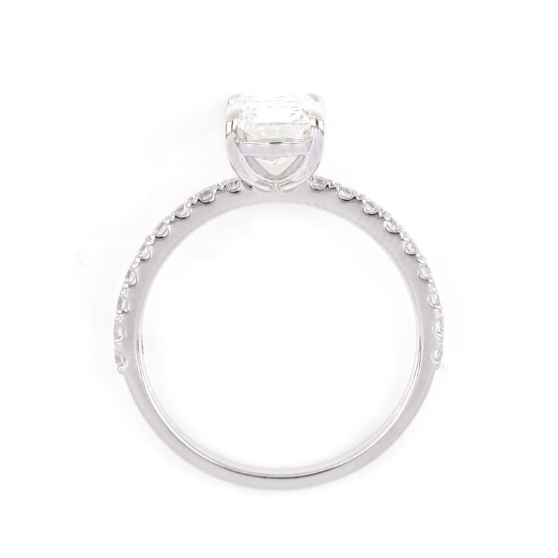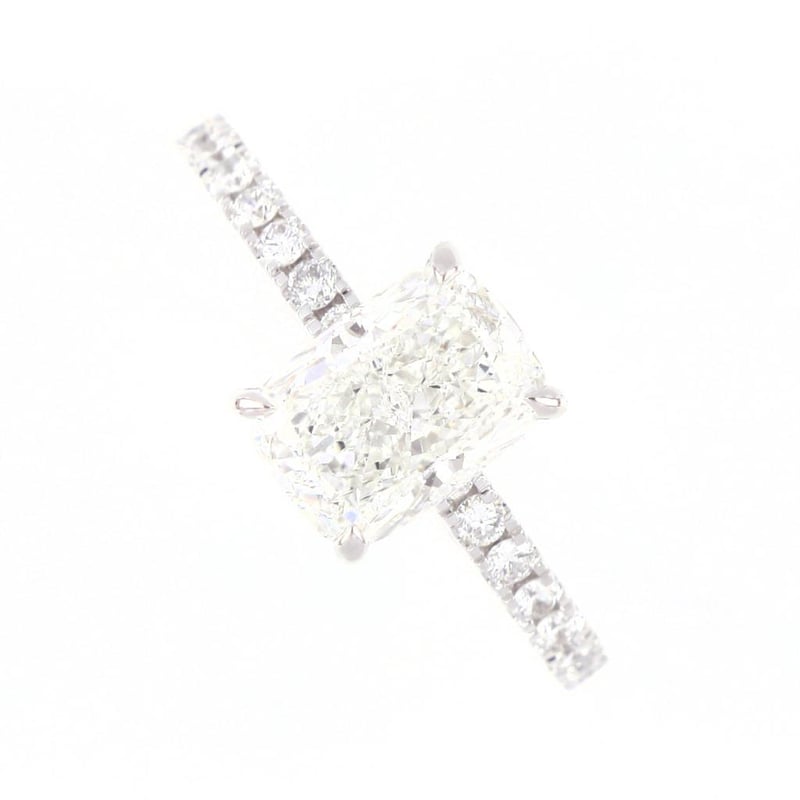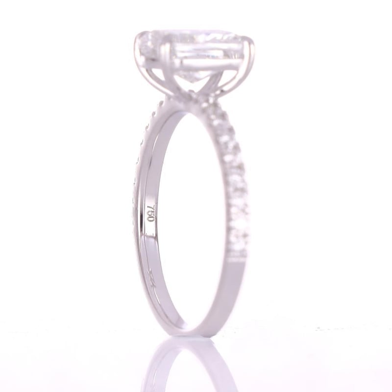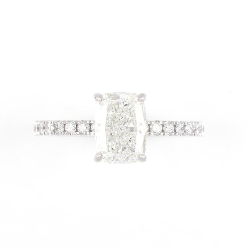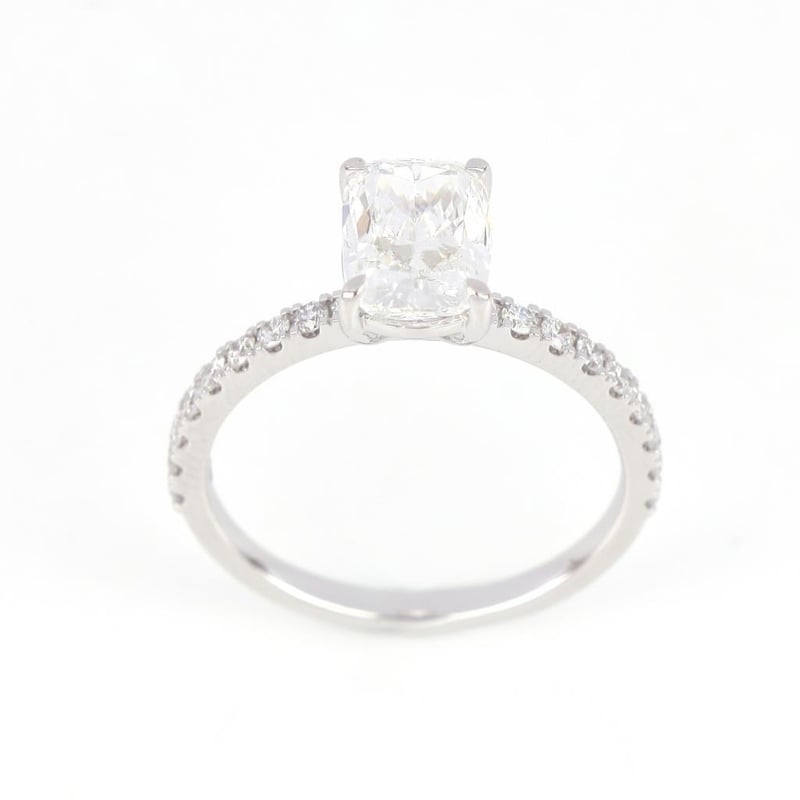 18K WHITE GOLD 2 CT CUSHION CUT LAB GROWN DIAMOND RING Total Item Weight: 3.04gms Centre Stone Details:Diamond Color: F Diamond Clarity: Vs1Side Stone Details:Diamond Color: E-F Diamond Clarity: Vvs-Vs Crafted In 18K White Gold, This Ring Features A Stunning Igi Certified 2.0 Ct Cushion Cut Lab Grown Diamond. (F Colour Vs1 Clarity)Centre Stone Is Set A Pave Band Of Small Round Cut Labgrown Diamonds Weighing Approx. 0.33 Ct.Total Diamond Weight: 2.33 CtIgi Certificate Number: Lg684507810Gross Weight: 3.04 Gms.Ring Size: N 1/2 (Au/Nz), 7 (Us/Ca) Markings: 750 MarkedCondition: NewEG: 654320 +32