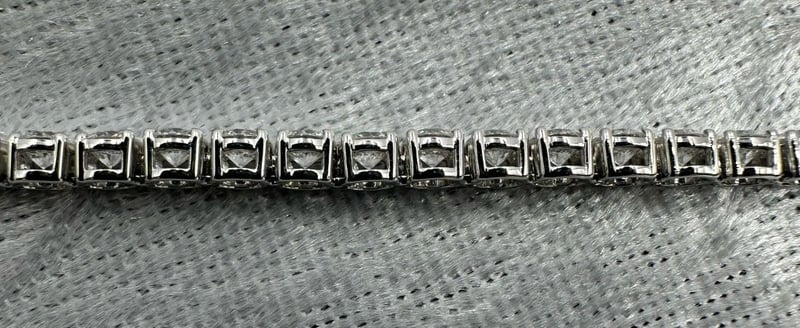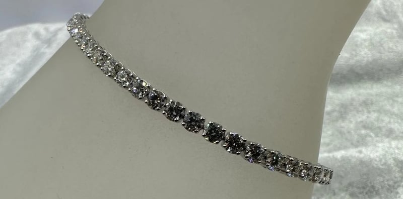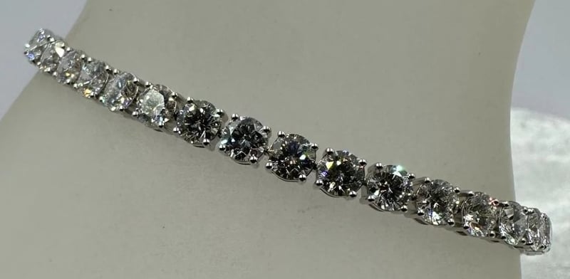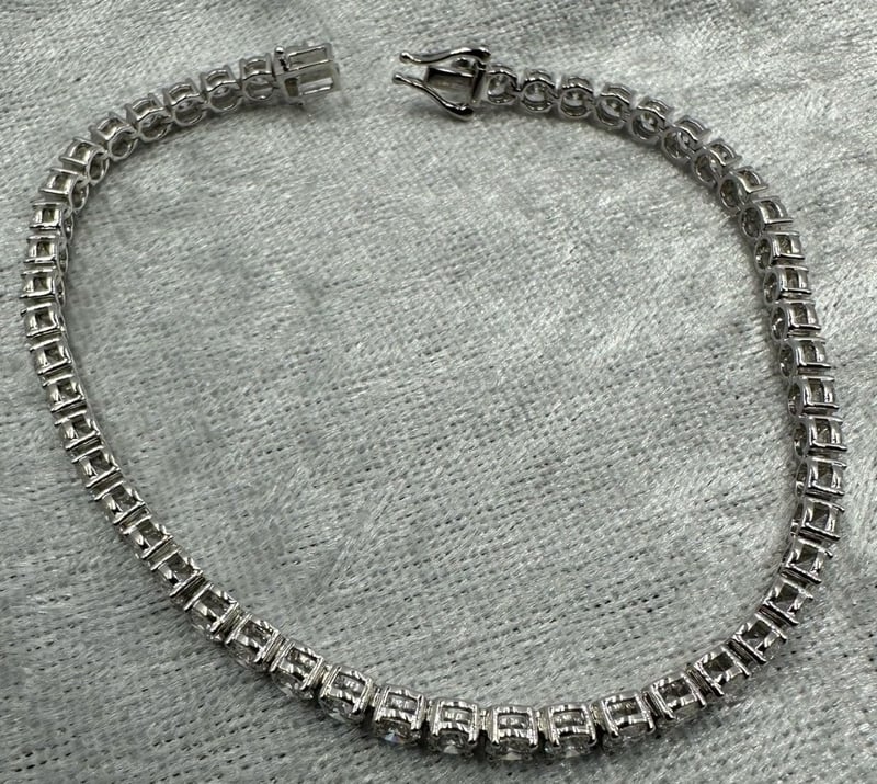18K WHITE GOLD TENNIS BRACELET WITH LAB GROWN ROUND BRILLIANT DIAMONDSF/Vs Minimum Quality. 52 X 0.12 Ct, 5.96 Total Carat Weight. Box Clasp, Double Safety. 18K White Gold, 4 Claw Basket Setting. Length: 17.5CmCondition: Good - Refer To ImagesCROSSDOCK162955+12