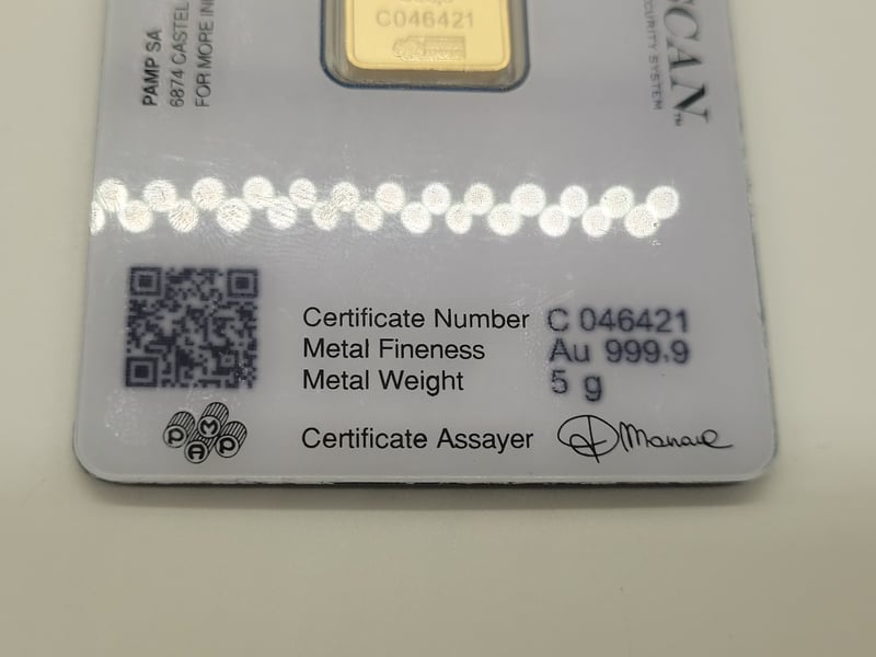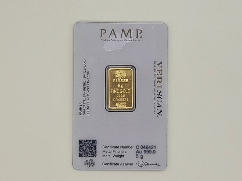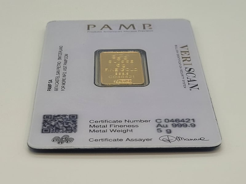 SWISS MADE GOLD MINTED BAR. FROM PAMP. NO: C046421.