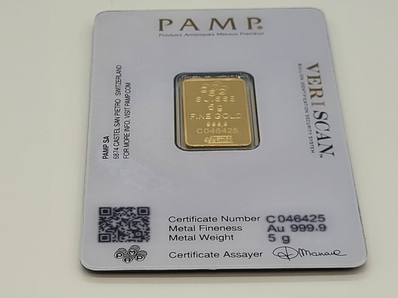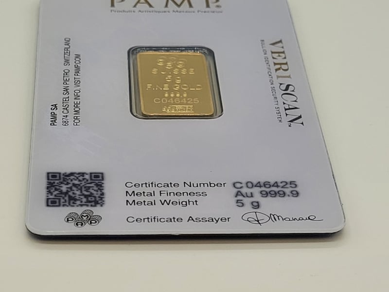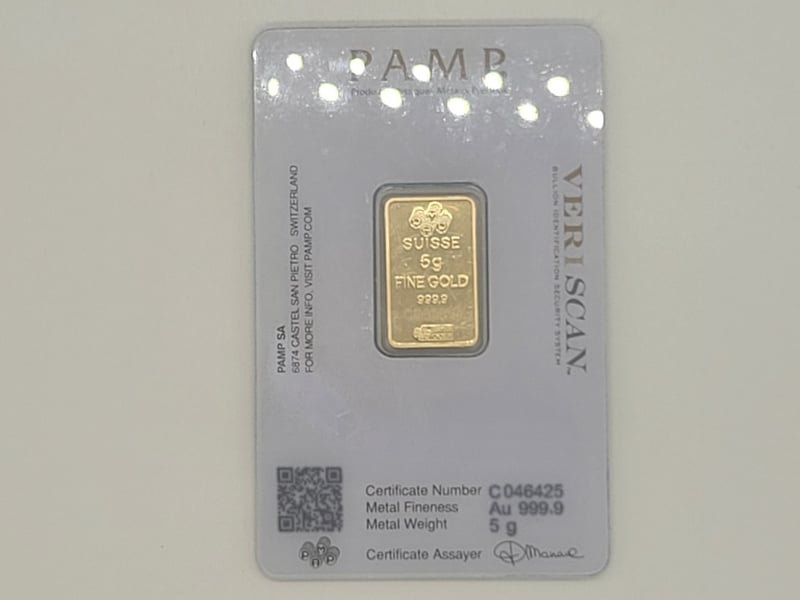 SWISS MADE GOLD MINTED BAR. FROM PAMP. NO: C046425.