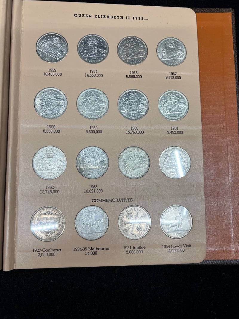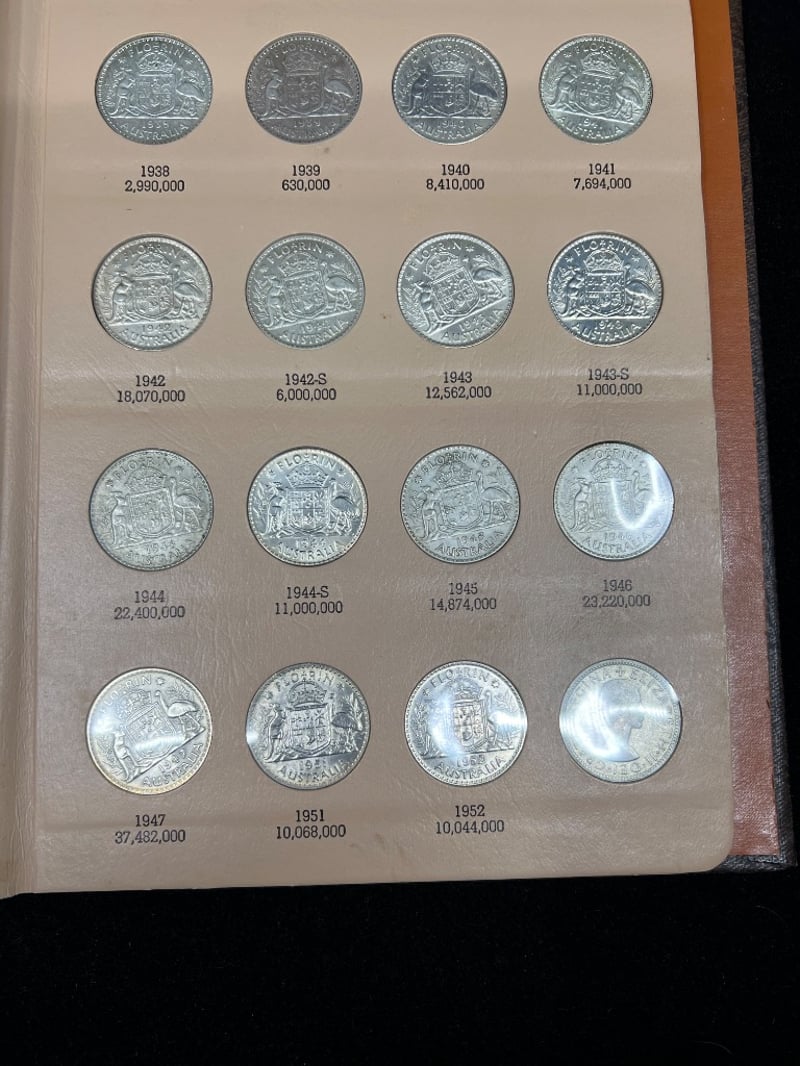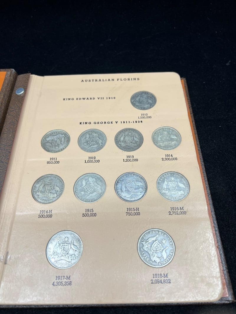 AUSTRALIAN COMPLETE FLORINS SILVER COINS INCLUDING SCARCE 1932, 1934/35 AND ALL COMMEMORATIVE FLORINS AND FEW EXTRA.