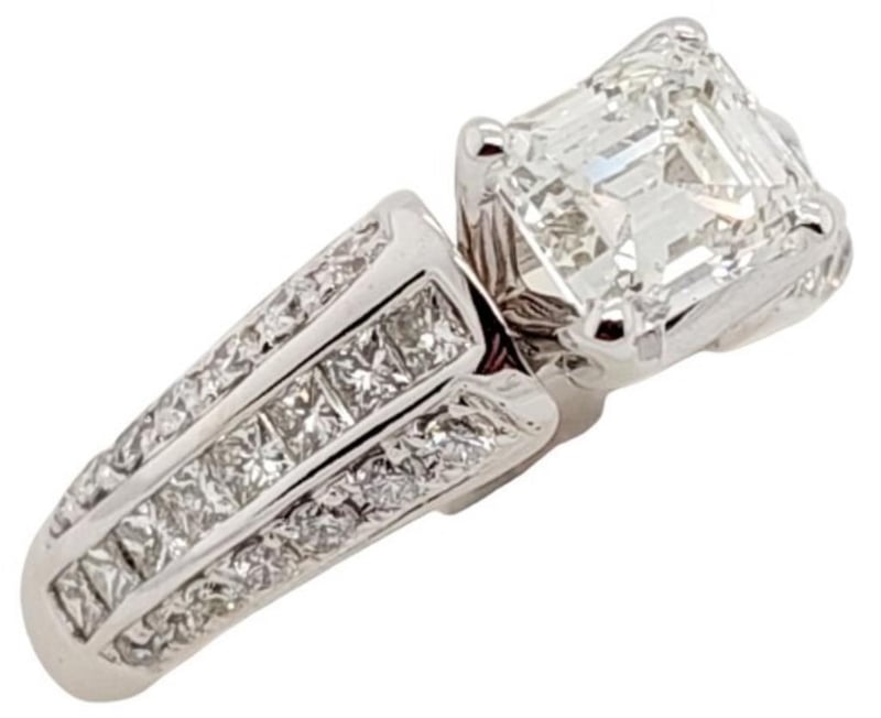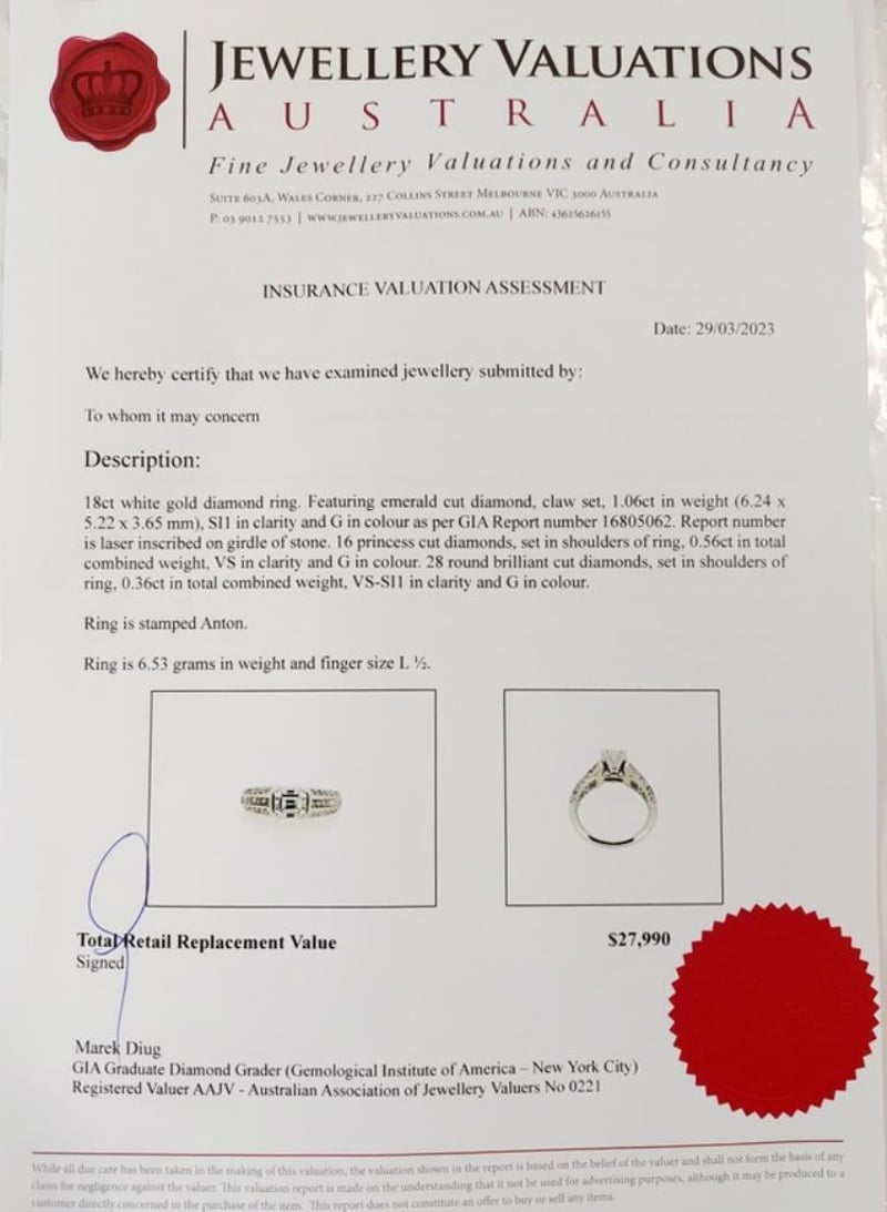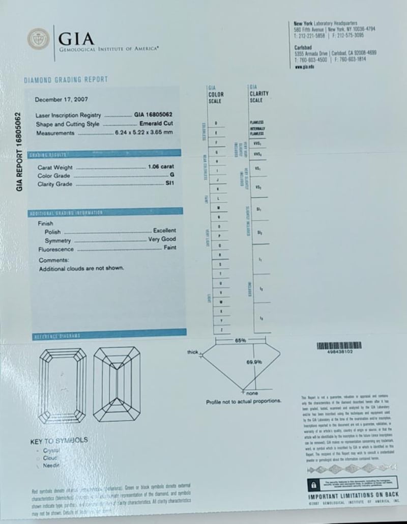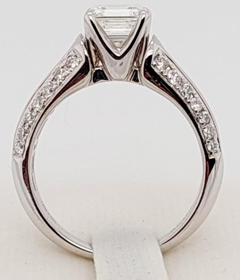 18CT WHITE GOLD GIA EMERALD CUT DIAMOND RING Total Item Weight: 6.53gms This 18 Carat White Gold Ring Features One Claw Set 1.06 Carat Emerald Cut Diamond, Measuring 6.24Mm X 5.22Mm X 3.65Mm, Si1 In Clarity And G In Colour As Per Gia Report Number 16805062. Report Number Is Laser Inscribed On The Girdle Of The Stone. Set On The Shoulders Of The Ring Are 16 Princess Cut Diamond, Weighing 0.56Ct In Combined Weight, Vs In Clarity And G In Colour And 28 Round Brilliant Cut Diamonds, Weighing 0.36Ct In Total Combined Weight, Vs-Si1 In Clarity And G In Colour.Australian Ring Size: L 1/2Box Included Markings: 18K/750 Jewellery Valuations Provided By A Third Party Professional Not Directly Associated With Lloyds Auctions at AUD $27990This Insurance Valuation has been provided by a registered Jewellery Valuer and is intended for insurance purposes only. The valuation amount has no bearing on the auction value of the item. Any questions regarding the valuation should be directed to the issuing Valuer (refer to contact details on the certificate) as Lloyds have no association or relationship with the Valuer or the valuation amount contained within the valuation. Condition: Excellent- Refer Images 0162901+29CROSSDOCK