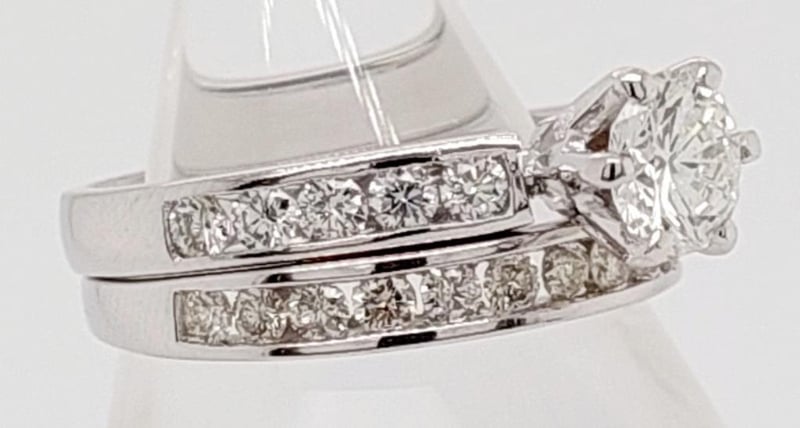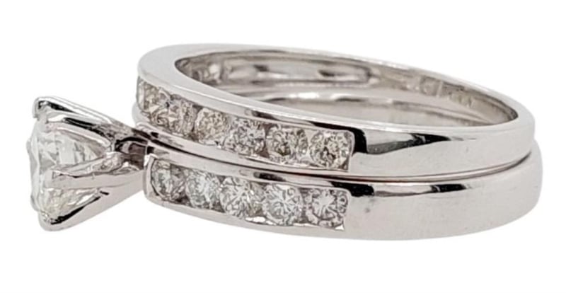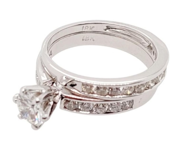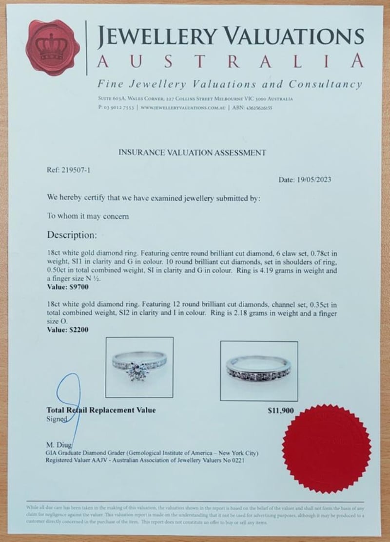 18CT WHITE GOLD AND DIAMOND RING SET Total Item Weight: 6.37gms This 18Ct White Gold Ring Set Consists Of 1 Ring Featuring 1 X 0.78Ct Round Brilliant Cut 6 Claw Set Diamond, Si1 In Clarity And G In Colour With 10 X Round Brilliant Cut Channel Set Diamonds Set In The Shoulder Of The Ring, 0.50Ct In Total Combined Weight, Si I Clarity, G In Colour And Is Ring Size: N1/2. Accompanying This Ring Is 1 Band Featuring 12 X Round Brilliant Cut Channel Set Diamonds, 0.35Ct In Total Combined Weight, Si2 In Clarity, Colour: I And Is Ring Size: O. Markings: 18K Jewellery Valuations Provided By A Third Party Professional Not Directly Associated With Lloyds Auctions at AUD $11900This Insurance Valuation has been provided by a registered Jewellery Valuer and is intended for insurance purposes only. The valuation amount has no bearing on the auction value of the item. Any questions regarding the valuation should be directed to the issuing Valuer (refer to contact details on the certificate) as Lloyds have no association or relationship with the Valuer or the valuation amount contained within the valuation. Condition: Excellent- Refer Images 0162901+55CROSSDOCK