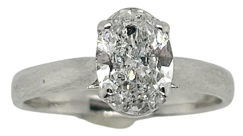18CT WHITE GOLD DIAMOND RING Total Item Weight: 4.14gms This 18Ct White Gold Diamond Ring Features 1X Brilliant Cut Oval Diamond, Claw Set 1.15Ct In Weight Measuring: 8.7Mm X 6.2Mm, P1 In Clarity And F In Colour.Ring Size: N Jewellery Valuations Provided By A Third Party Professional Not Directly Associated With Lloyds Auctions at AUD $14800This Insurance Valuation has been provided by a registered Jewellery Valuer and is intended for insurance purposes only. The valuation amount has no bearing on the auction value of the item. Any questions regarding the valuation should be directed to the issuing Valuer (refer to contact details on the certificate) as Lloyds have no association or relationship with the Valuer or the valuation amount contained within the valuation. Condition: Excellent- Refer Images 0162901+119CROSSDOCK