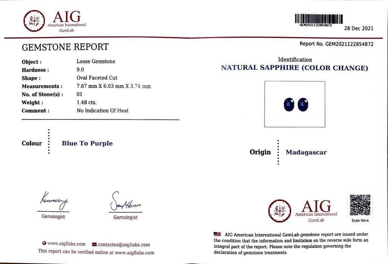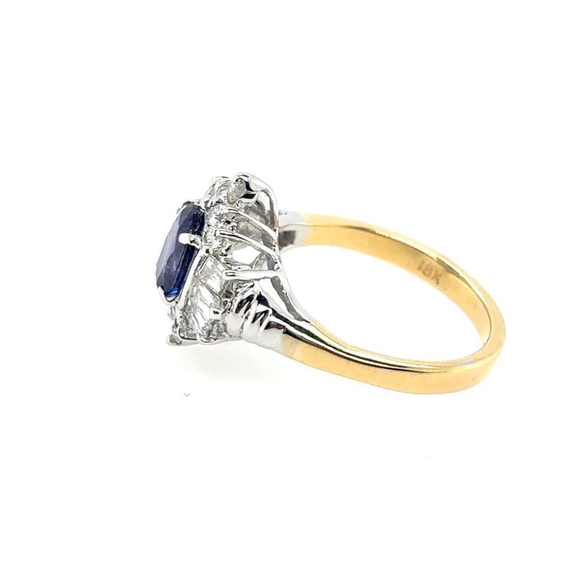 18CT TWO TONE GOLD SAPPHIRE AND DIAMOND RING Total Item Weight: 5.94gms This 18Ct Yellow & White Gold Ring Features 1 X 1.48Ct Oval Cut Claw Set Unheated Madagascan Sapphire, Measuring 7.67Mm X 6.03Mm X 3.74Mm And Is Blue To Purple In Colour As Per Aig Report Number: Gem2021122854872 With 6 X Baguette & 10 X Round Brilliant Cut Diamonds, 0.55Ct In Total Combined Weight, Vs In Clarity And F In Colour. Jewellery Valuations Provided By A Third Party Professional Not Directly Associated With Lloyds Auctions at AUD $20950This Insurance Valuation has been provided by a registered Jewellery Valuer and is intended for insurance purposes only. The valuation amount has no bearing on the auction value of the item. Any questions regarding the valuation should be directed to the issuing Valuer (refer to contact details on the certificate) as Lloyds have no association or relationship with the Valuer or the valuation amount contained within the valuation. Condition: Excellent- Refer Images 0162901+157CROSSDOCK