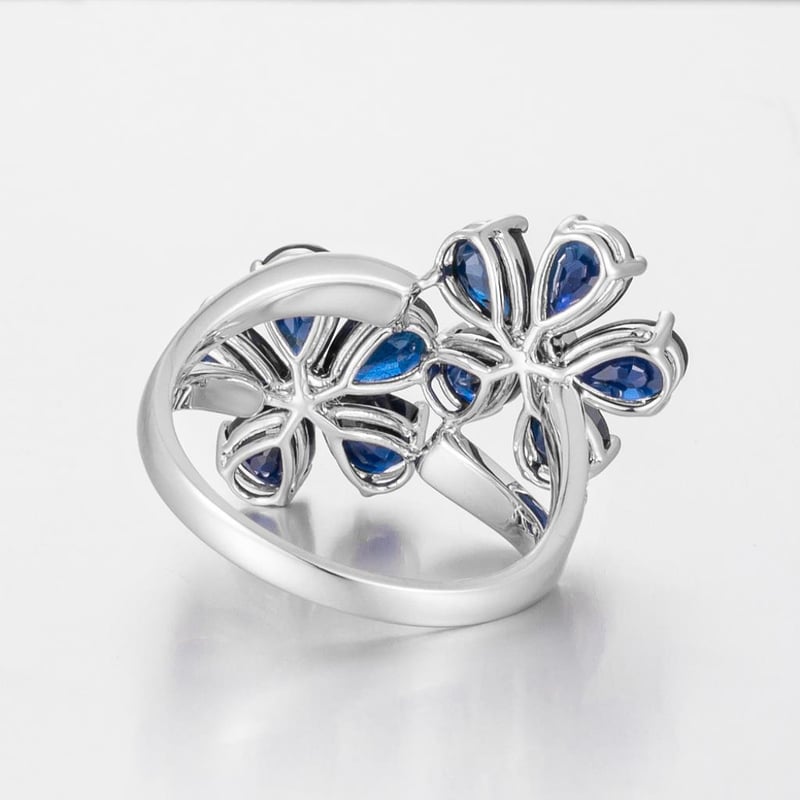 14CT WHITE GOLD AUSTRALIAN SAPPHIRE AND DIAMOND FLORAL TWIST RING FEATURING CENTRE, 10 OVAL CUT, DARK BLUE AUSTRALIAN SAPPHIRES (5.54CT TSW, MODERATELY INCLUDED), CLAW SET, WITH 24 ROUND BRILLIANT CUT DIAMONDS (0.26CT TDW, F-G COLOUR, VS1-VS2 CLARITY), BEAD SET. RING SIZE O. Valuations Provided by an Independent Third-Party Professional Not Directly Associated With Lloyds Auctions at AUD $26000This valuation has been conducted by an independent third-party professional. The valuation amount is an assessment by the issuing valuer and does not reflect the auction value of the item. Any inquiries regarding the valuation should be directed to the issuing valuer (refer to contact details on the certificate), as Lloyds Auctions has no affiliation or influence over the valuation, the valuer, or the stated amount. Condition: Good - Refer Images 0586200+502