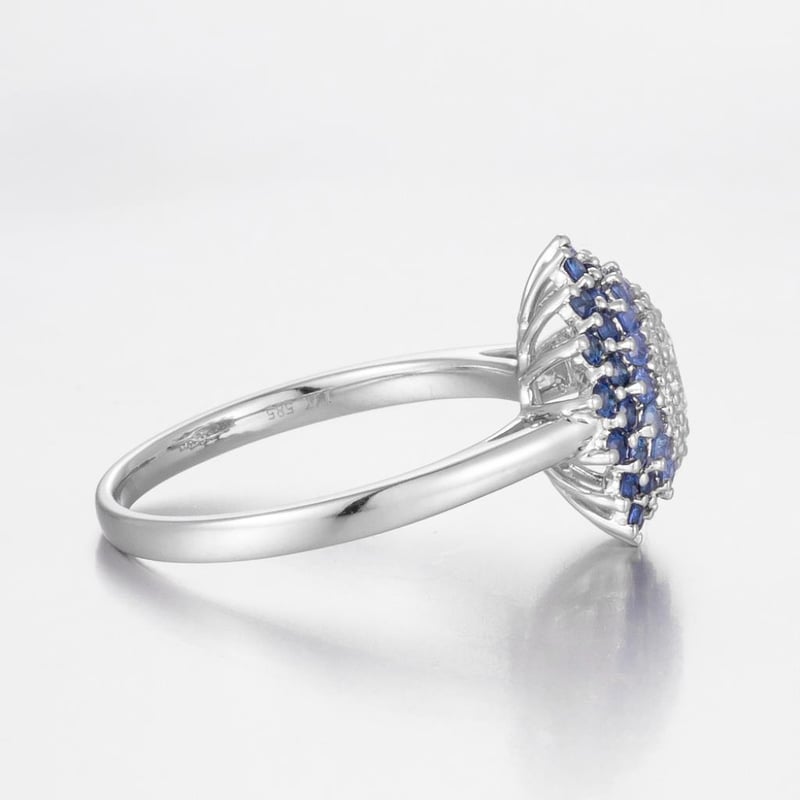 14CT WHITE GOLD CEYLON SAPPHIRE AND DIAMOND DOUBLE HALO RING FEATURING CENTRE, ONE ROUND BRILLIANT CUT DIAMOND (0.39CT, H COLOUR, SI1 CLARITY), CLAW SET, WITH 16 ROUND BRILLIANT CUT DIAMONDS (0.08CT TDW, G-H COLOUR, SI1-SI2 CLARITY), BEAD SET, AND 48 ROUND CUT, LIGHT-DARK CORNFLOWER BLUE CEYLON SAPPHIRES (0.74CT TSW, SLIGHT INCLUSIONS), CLAW SET. RING SIZE O. Valuations Provided by an Independent Third-Party Professional Not Directly Associated With Lloyds Auctions at AUD $25600This valuation has been conducted by an independent third-party professional. The valuation amount is an assessment by the issuing valuer and does not reflect the auction value of the item. Any inquiries regarding the valuation should be directed to the issuing valuer (refer to contact details on the certificate), as Lloyds Auctions has no affiliation or influence over the valuation, the valuer, or the stated amount. Condition: Good - Refer Images 0586200+513