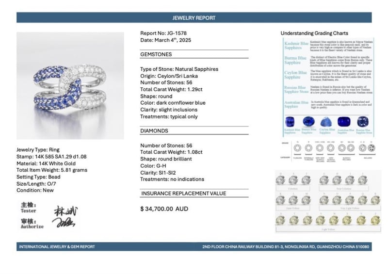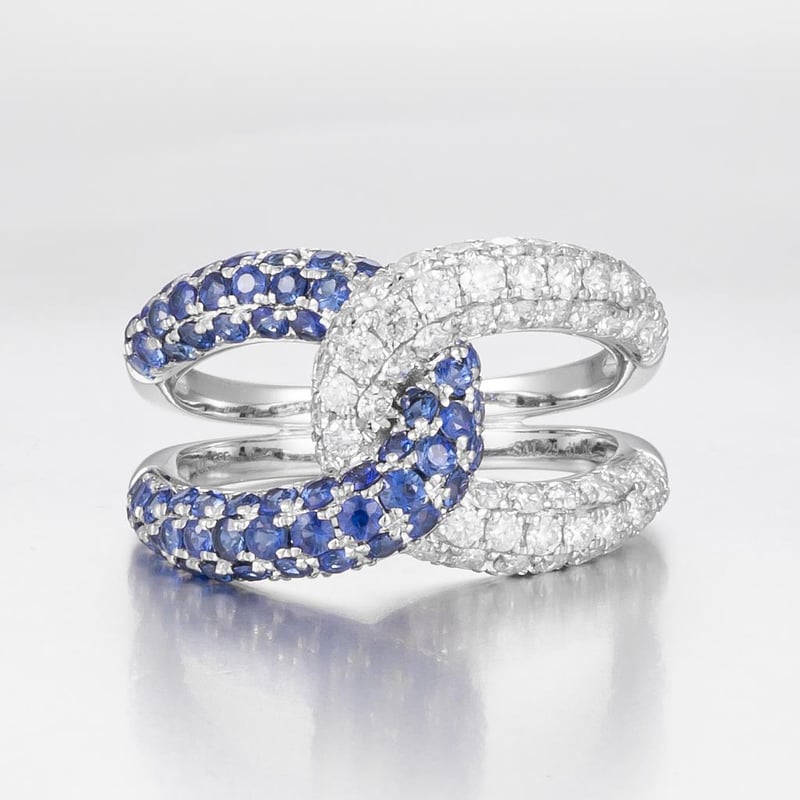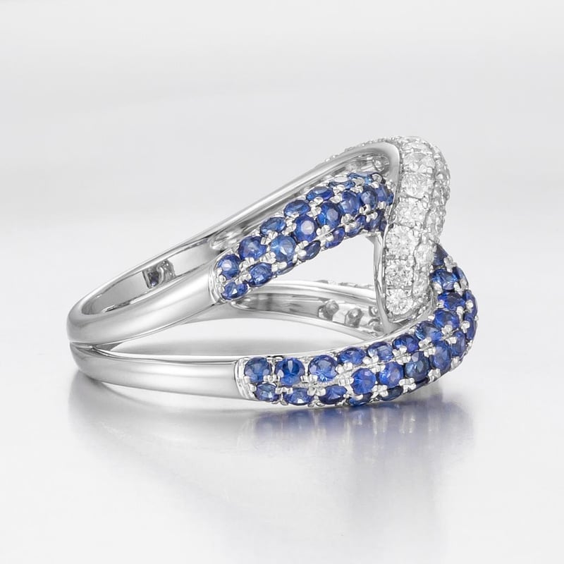 14CT WHITE GOLD CEYLON SAPPHIRE AND DIAMOND INFINITY COCKTAIL RING FEATURING CENTRE, 56 ROUND CUT, DARK CORNFLOWER BLUE CEYLON SAPPHIRES (1.29CT TSW, SLIGHT INCLUSIONS), BEAD SET, WITH 56 ROUND BRILLIANT CUT DIAMONDS (1.08CT TDW, G-H COLOUR, SI1-SI2 CLARITY), BEAD SET. RING SIZE O. Valuations Provided by an Independent Third-Party Professional Not Directly Associated With Lloyds Auctions at AUD $34700This valuation has been conducted by an independent third-party professional. The valuation amount is an assessment by the issuing valuer and does not reflect the auction value of the item. Any inquiries regarding the valuation should be directed to the issuing valuer (refer to contact details on the certificate), as Lloyds Auctions has no affiliation or influence over the valuation, the valuer, or the stated amount. Condition: Good - Refer Images 0586200+514