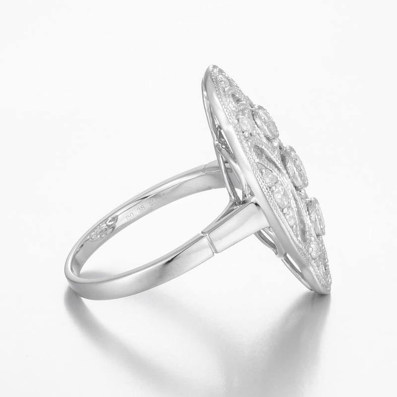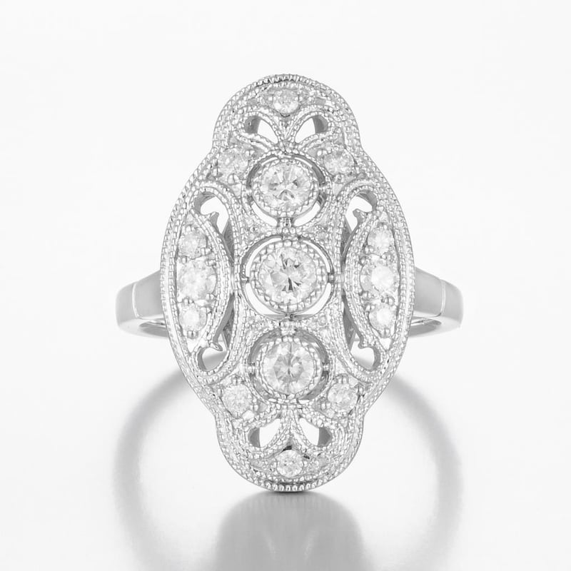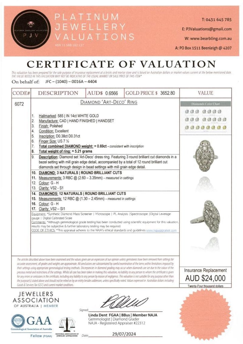 14K WHITE GOLD DIAMOND ART DECO STYLE RING FEATURING, 15 ROUND BRILLIANT CUT DIAMONDS (0.69CT TDW, G-H COLOUR, VS2-SI1 CLARITY), BEZEL/BEAD SET. RING SIZE O.