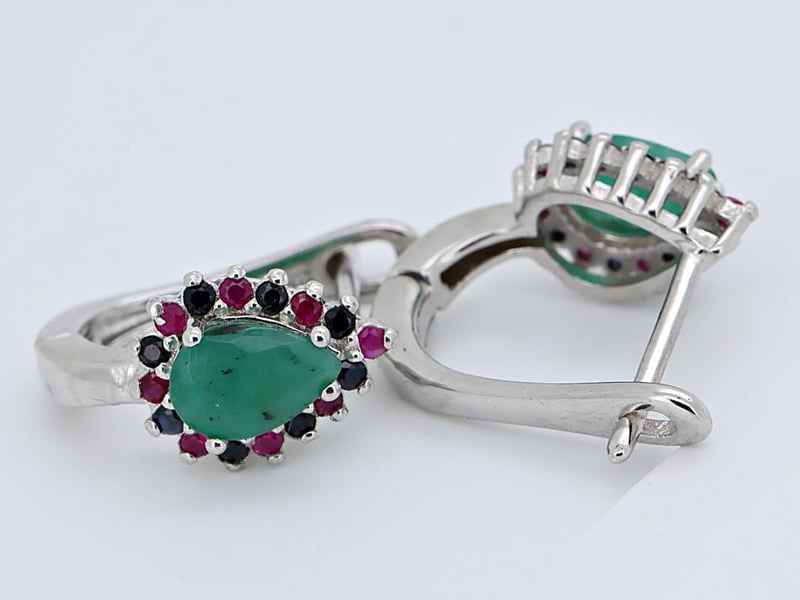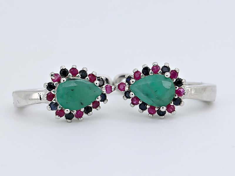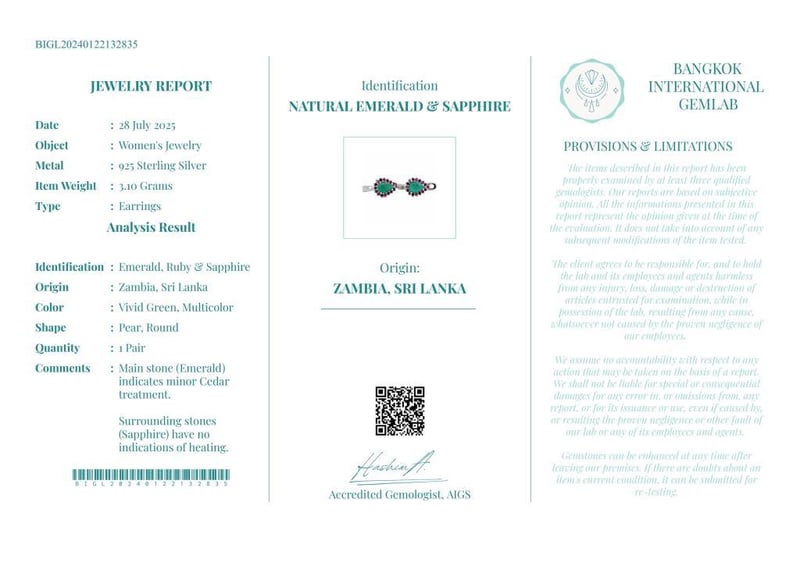 NATURAL ZAMBIAN EMERALD & SRI LANKAN SAPPHIRE (UNTREATED) EARRINGS ON 925 SILVER - WITH DIGITAL CERTIFICATE ONLY Gemstone : Natural Zambian Emerald & Sri Lankan Sapphire (Untreated)Certificate (Digital): Bigl20240122132835Item Total Weight : 3.1 GramsMain Stone Color : Vivid Green, MulticolorSize : Comments : Main Stone (Emerald) Indicates Minor Cedar Treatment.Surrounding Stones (Sapphire) Have No Indications Of Heating.✻ Verify Report Online At Www.Bangkokinternationalgemlab.Co Condition: Good - Refer Images 0161136+25