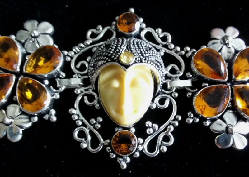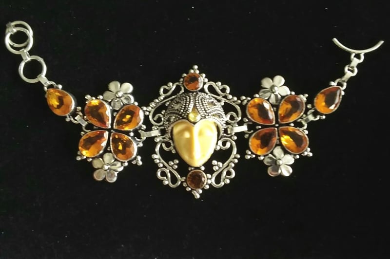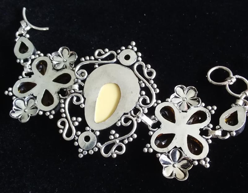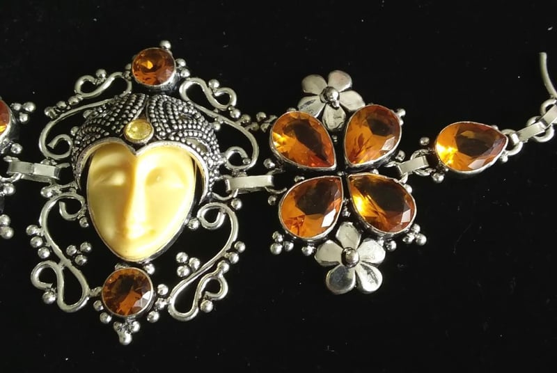 925 SILVER PLATED MOON FACE CITRINE GEMSTONE Condition: Good - Refer To Images 0991672+13