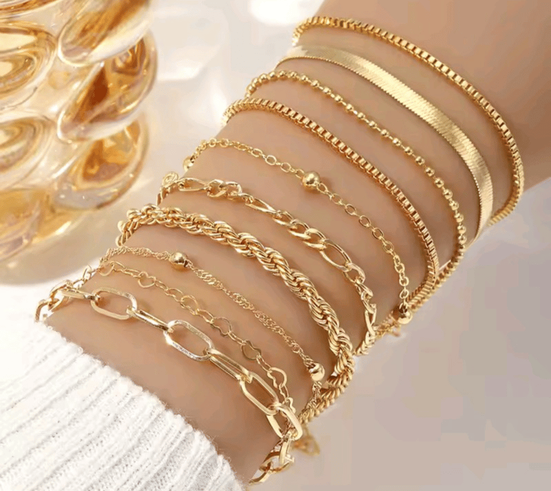 ASSORTED GOLD COLOURED STAINLESS STEEL BRACELETS OR ANKLETS Condition: Good - Refer To Images 0991672+14