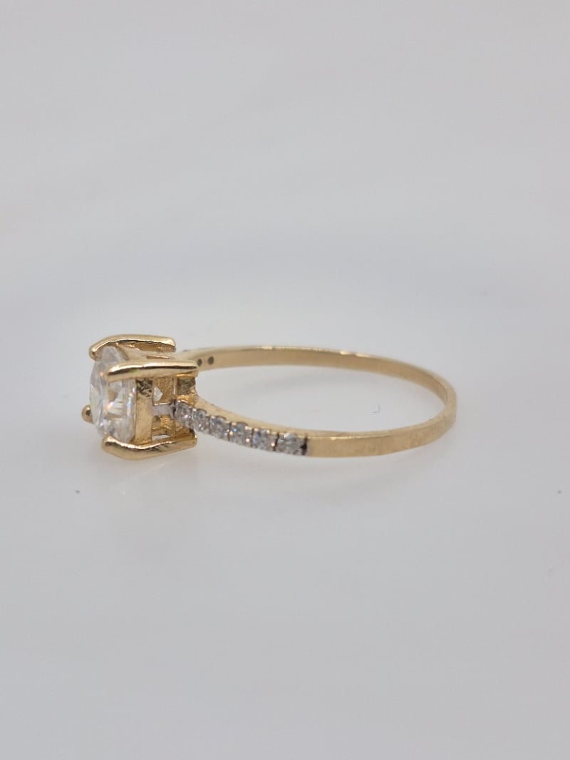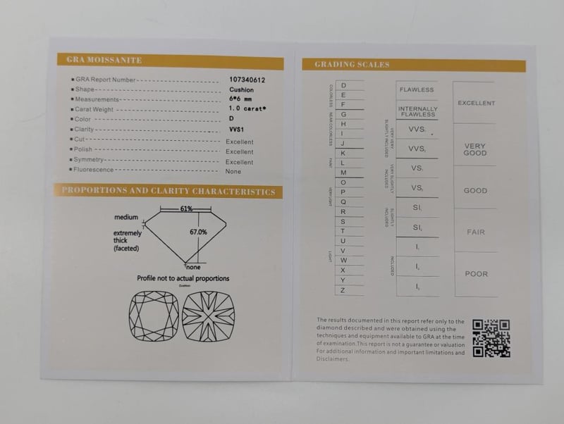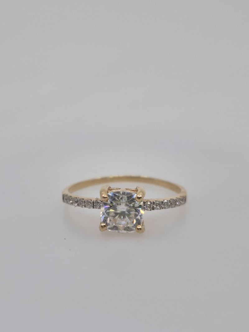 14CT YELLOW GOLD 1.0CT MOISSANITE RING Size: 6.6Mm Shape: Cushion Comes With Gra Moissanite Report Condition: Good - Refer To Images 586160+19