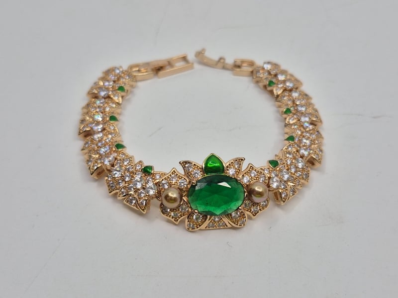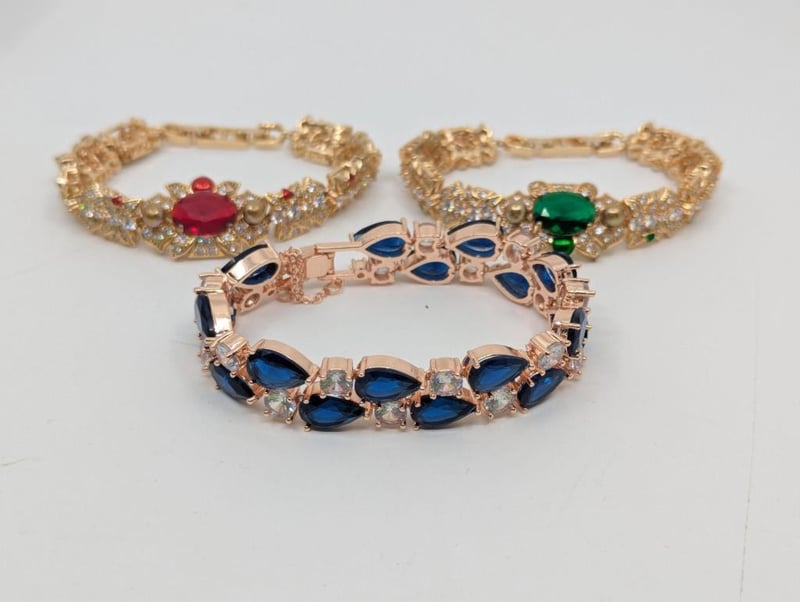 X3 FAUX GOLD GLASS STONE BRACELETS SOLD AS LOT Condition: Good - Refer To Images 586160+30