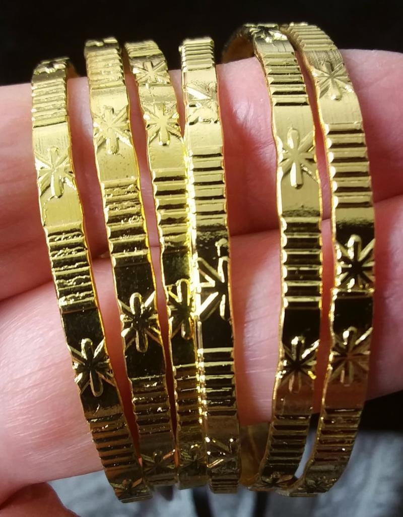 6 X GOLD PLATED KIDS BANGLES 53MM Condition: Good - Refer Images 0162946+31FC