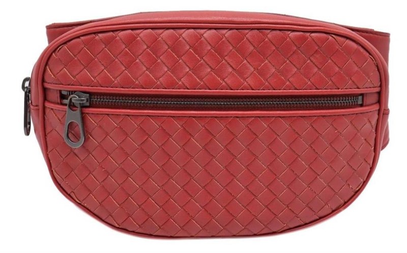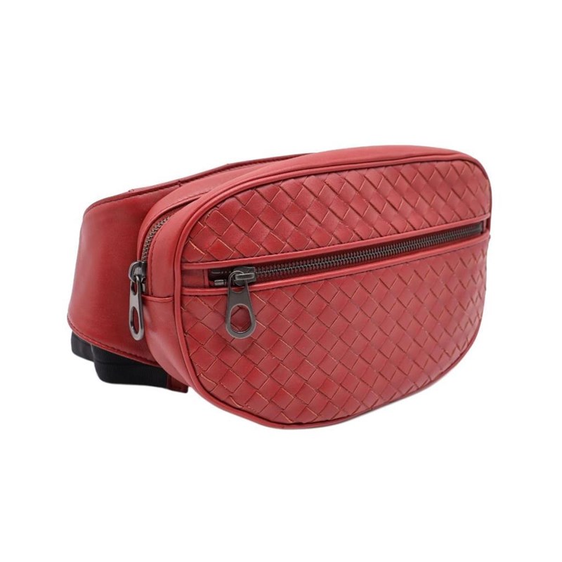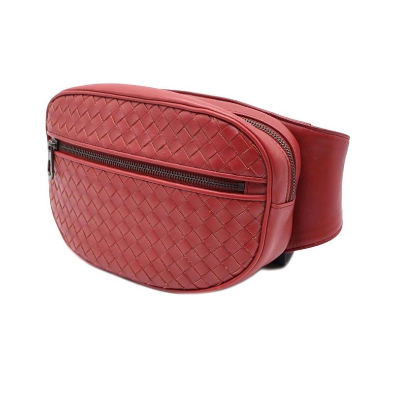 BOTTEGA VENENTA RED INTRECCIATO LEATHER ZIP BELT BAG