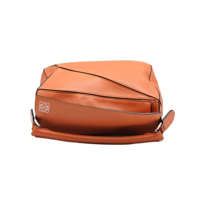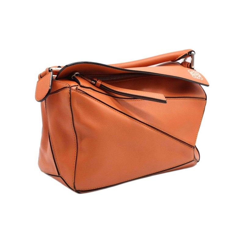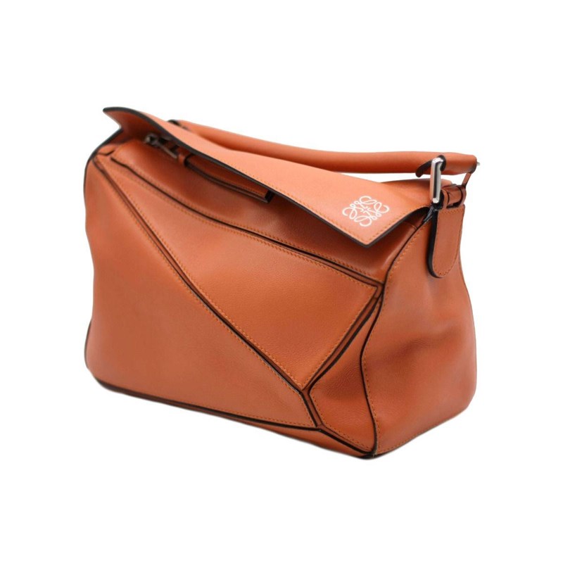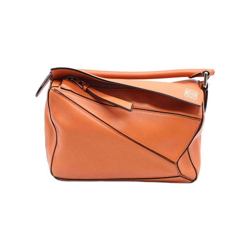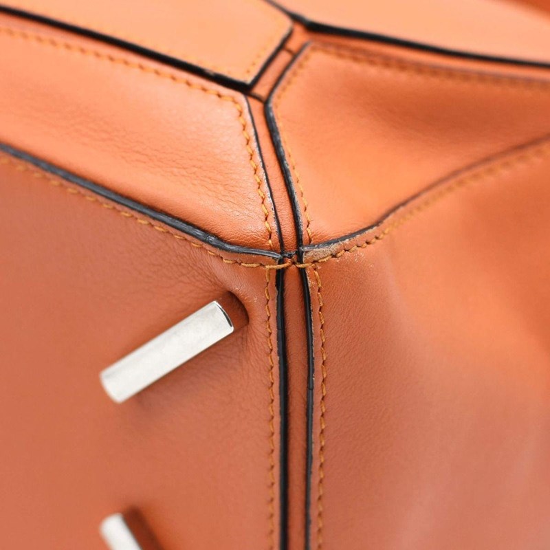 Leather with silver-tone hardware, single top handle, a rear zipped pocket, protective metal feet and a shoulder strap.