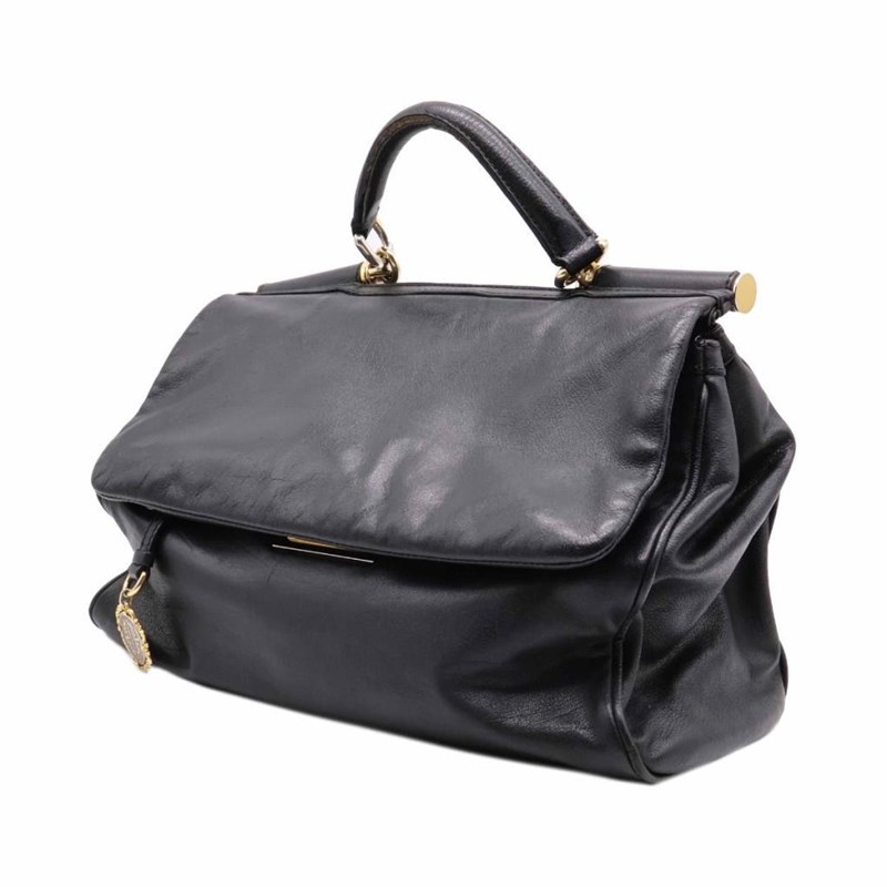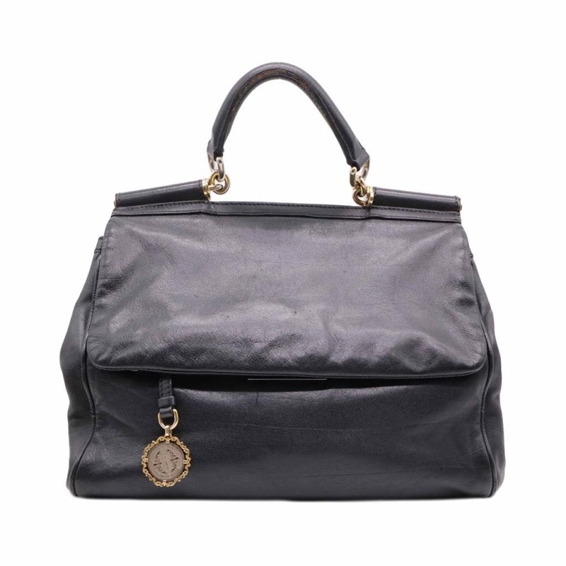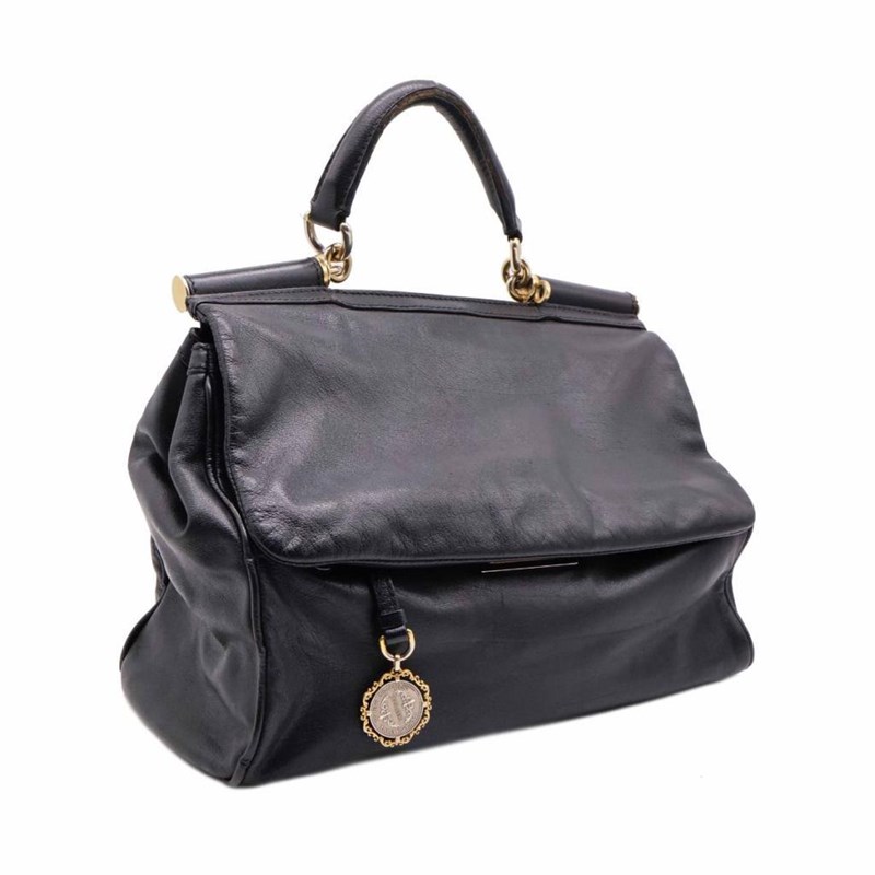 DOLCE & GABBANA BLACK LEATHER LARGE MISS SICILY TOP HANDLE BAG