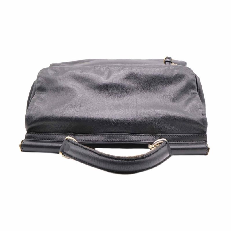 Leather with gold-tone hardware, single leather top handle, magnetic flap closure, a rear zipped pocket and protective metal feet