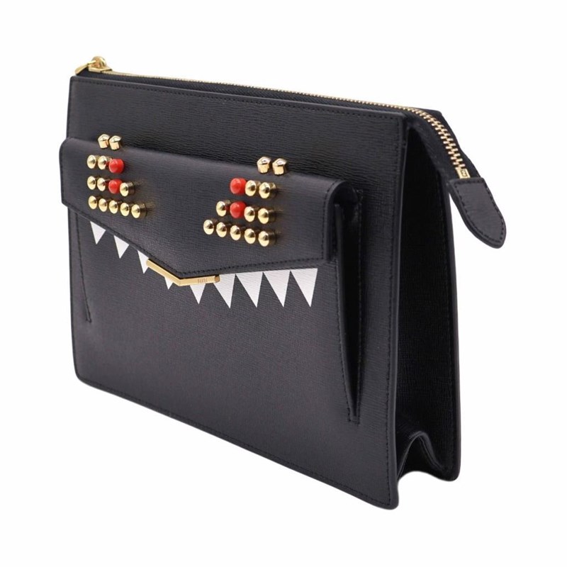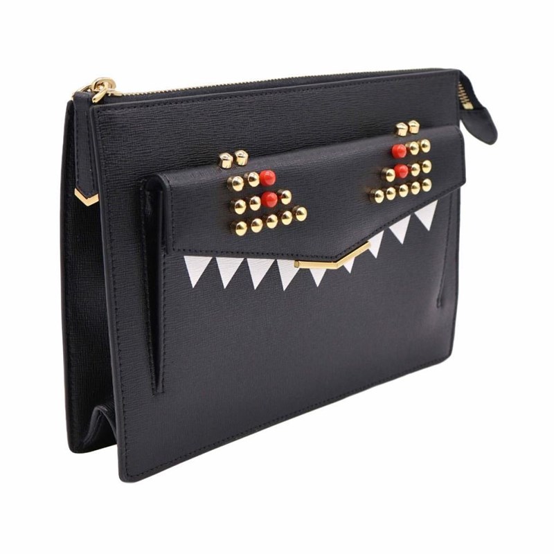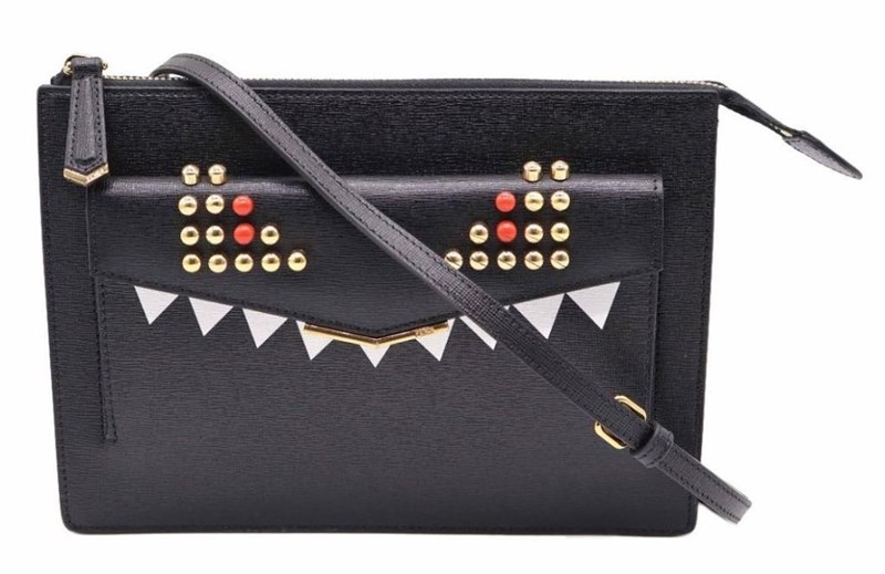 FENDI BLACK MONSTER STUDDED CROSSBODY BAG