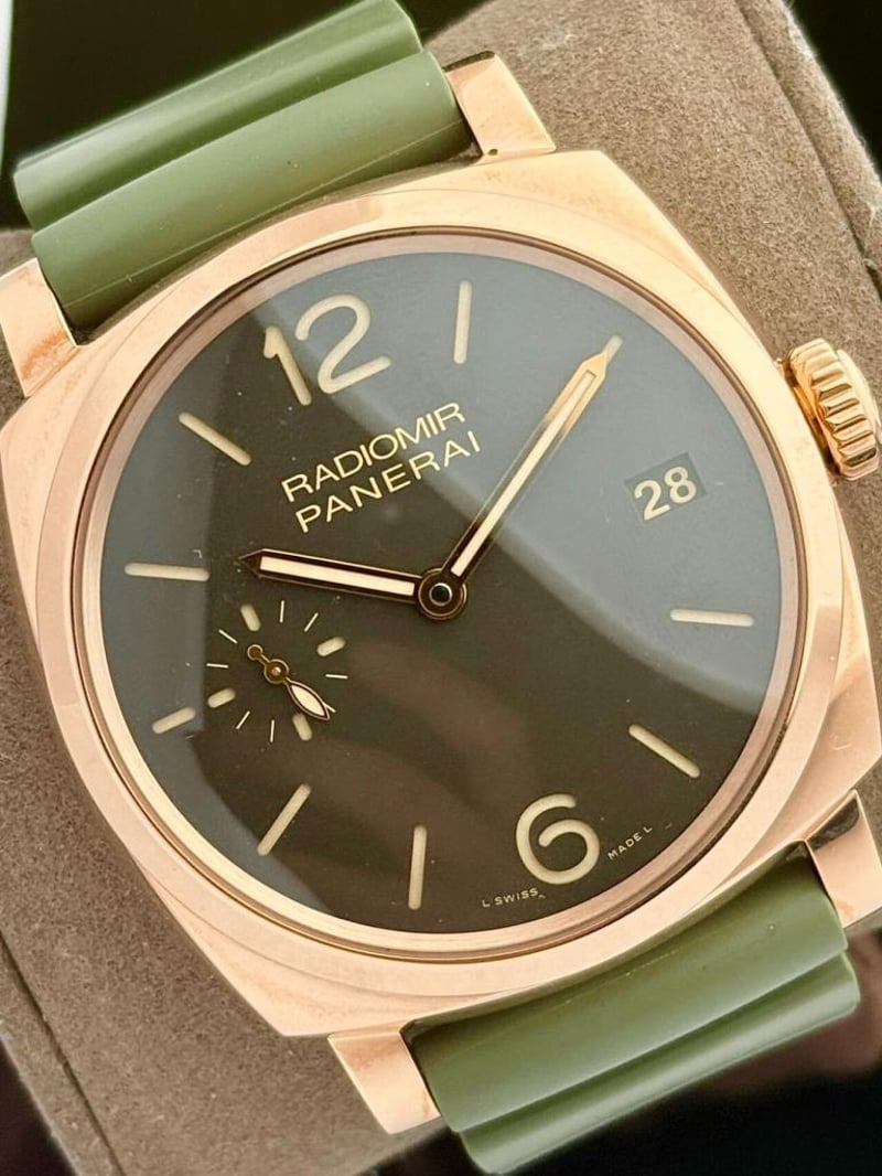 PANERAI RADIOMIR 1940 18K ROSE GOLD GREEN RUBBER STRAP PAM 00515 | 2017 | 47MM