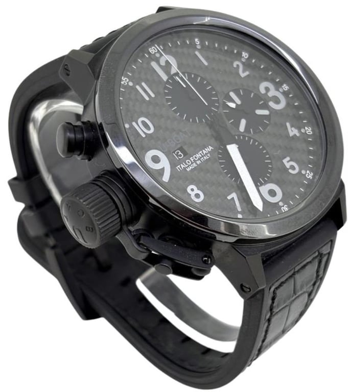 UBOAT BP FIGHT TANK 50 U-7750/50 2014 Price Guide - Circa $3,000 REFERENCE NO: U-7750/50 PRODUCTION YEAR: 2014 DIAL: CATBONFIBER CASE DESCRIPTION: STAINLESS STEEL CASE SIZE: 50MM BRACELET: LEATHER MOVEMENT: AUTOMATIC BOX: Box Included PAPERS: Papers Included Condition: Used - Refer Images SR