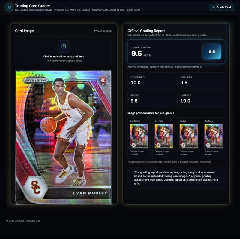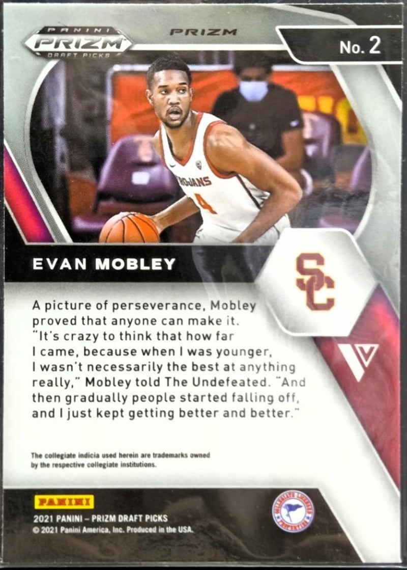 EVAN MOBLEY - 2021 PANINI PRIZM DRAFT PICKS #2 EVAN MOBLEY (HYPER PRIZM ROOKIE CARD) - NBA BASKETBALL Featuring Evan Mobley’S Collegiate Debut, This Hyper Prizm Rookie Card From The 2021 Prizm Draft Picks Set Exhibits A Vibrant Reflective Finish. It Is In Excellent, Ideal For Collectors Tracking Emerging Nba Talent. The Card Is In Exceptional Condition, Preserved Immediately After Opening - As With All Cards, Immediately Penny-Sleeved And Hard-Cased.This Card Has Undergone An Ai Pregrading Assessment. Refer To The Pregrading Assessment Report For Further Detail.584948+11