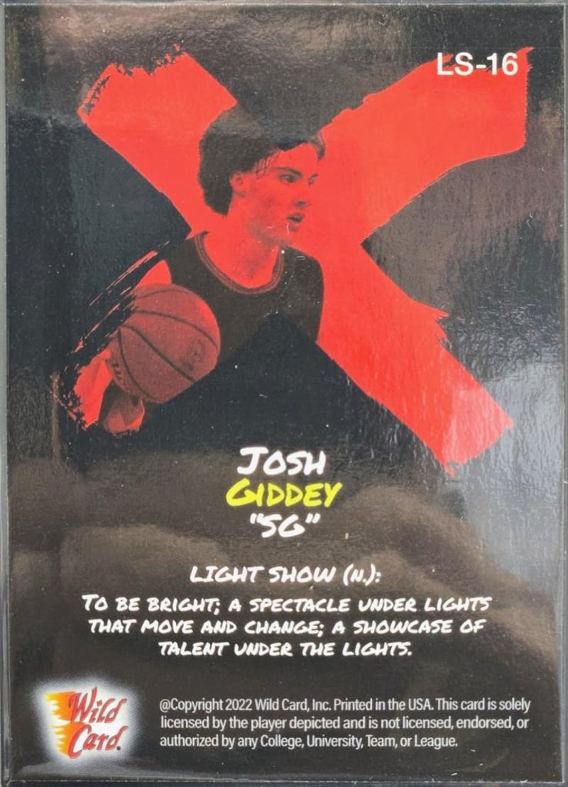 JOSH GIDDLE "SG" - 2022 WILD CARD ALUMINATION BASKETBALL EDITION #LS-16 JOSH GIDDEY (LIGHT SHOW LS / ROOKIE CARD) - NBA BASKETBALL - CHICAGO BULLS