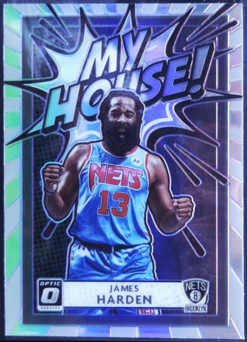 This Silver Prizm “My House” Insert Captures James Harden As A Central Figure For The Brooklyn Nets. The Reflective Surface And Striking Artwork Highlight The Card’S Appeal, Exceptional Condition, The Card Preserved Immediately After Opening - Immediately Penny-Sleeved And Hard-Cased.
