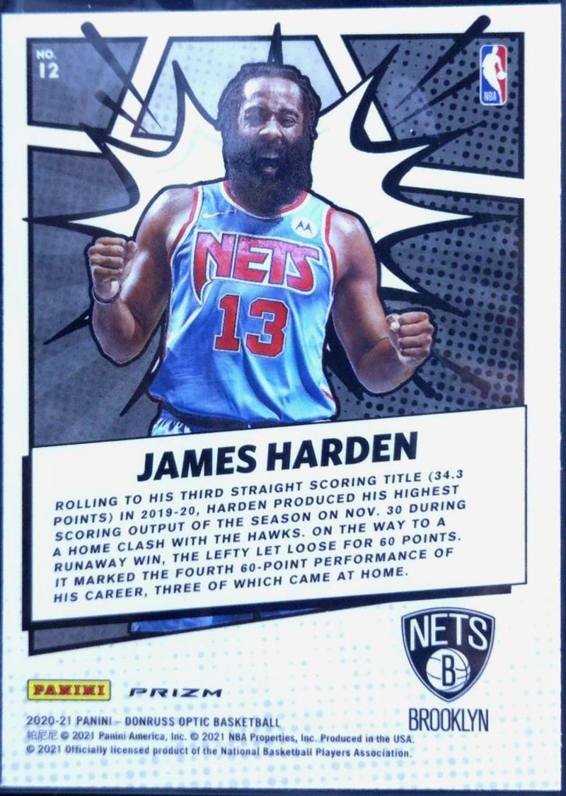 JAMES HARDEN - 2020-21 DONRUSS OPTIC BASKETBALL #12 JAMES HARDEN (MY HOUSE SILVER PRIZM) - NBA BASKETBALL - BROOKLYN NETS