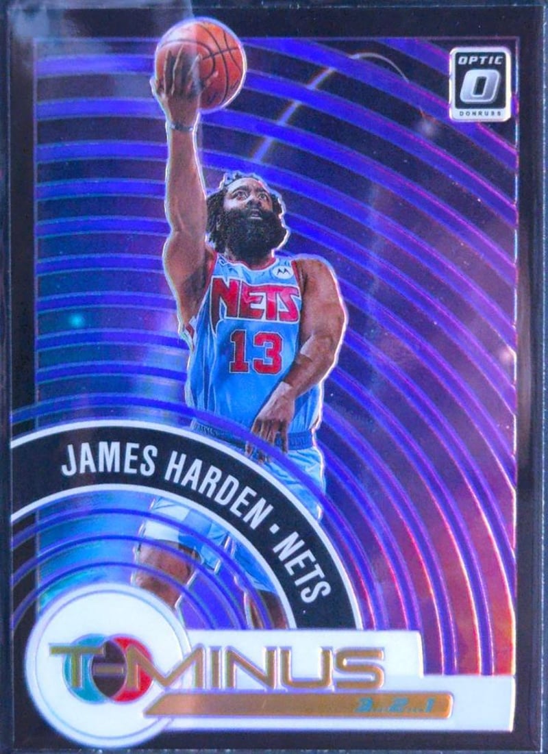 The “T-Minus” Prizm Insert From The 2020–21 Donruss Optic Set Depicts James Harden In An Energetic Layout. The Card’S Lustrous Finish And Modern Design Remain Flawless, And The Card Is In Exceptional Condition, The Card Preserved Immediately After Opening - Immediately Penny-Sleeved And Hard-Cased.