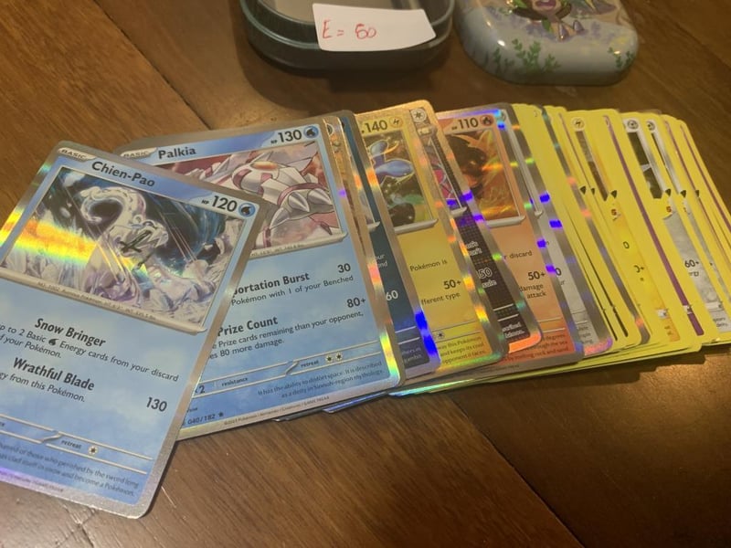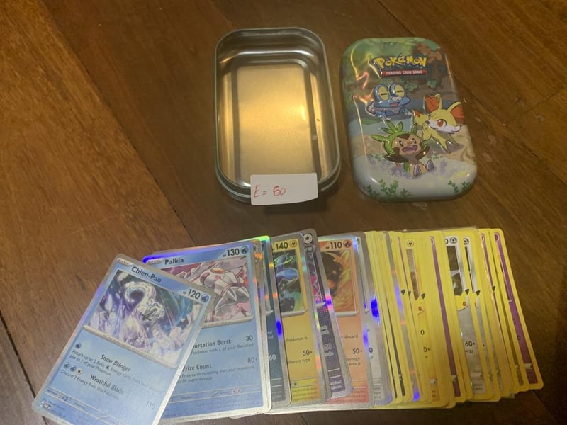 POKEMON COLLECTORS TIN + 50 CARDS (HALO/REVERSE HOLO/COMMONS)