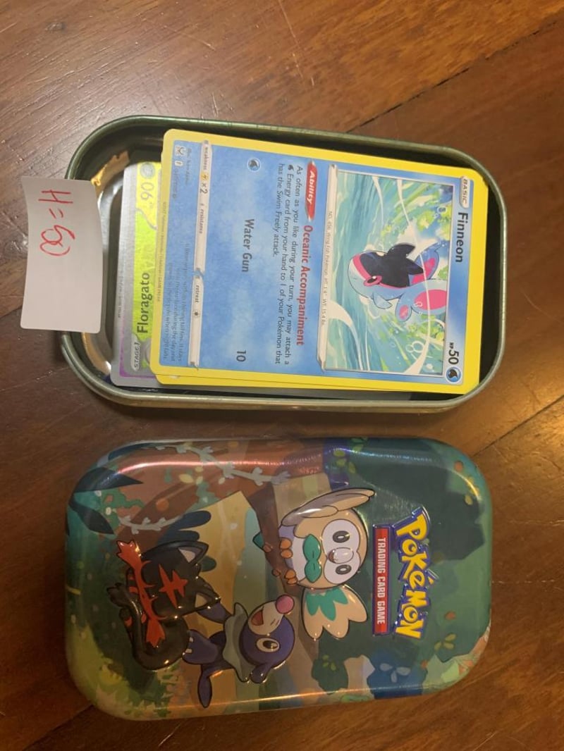 POKEMON COLLECTORS TIN + 50 CARDS (HALO/REVERSE HOLO/COMMONS)+8