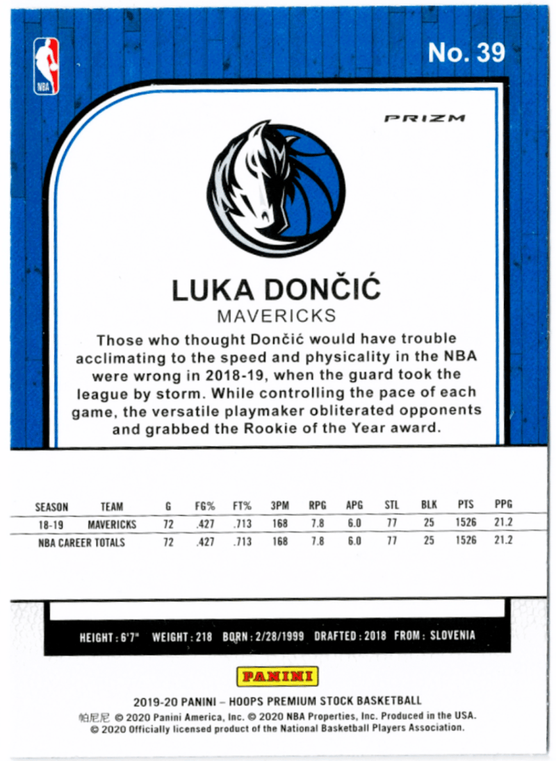 LUKA DONČIĆ 2019-20 PANINI HOOPS PREMIUM STOCK #39 FLASH PRIZM PARALLEL (DALLAS MAVERICKS)
