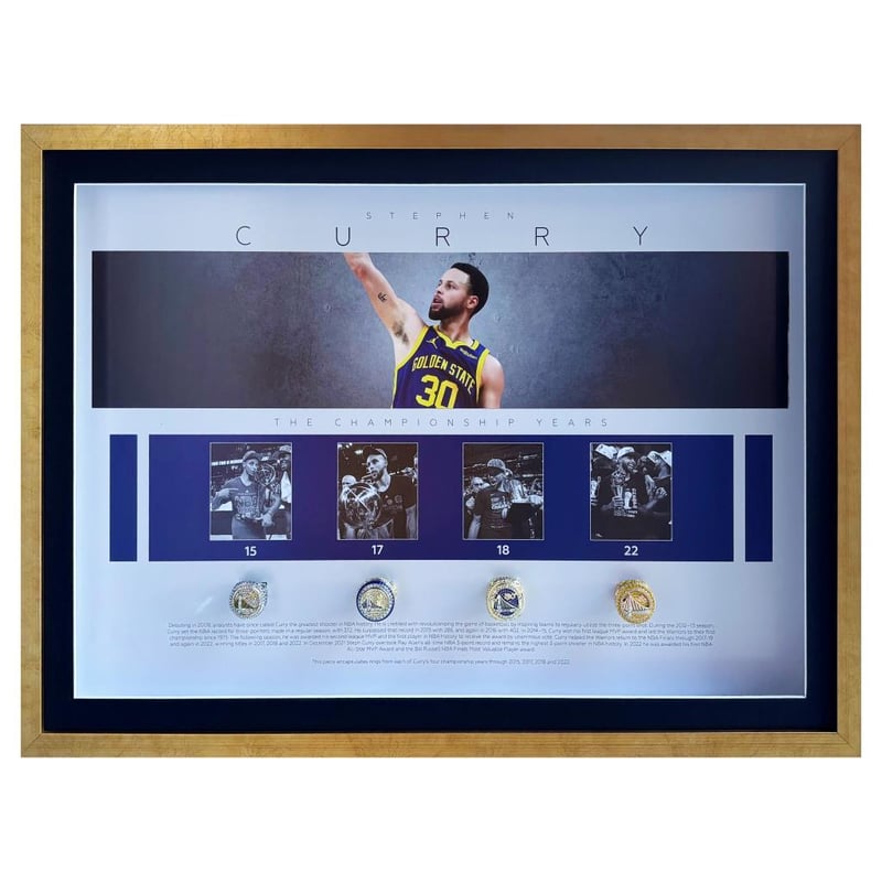 Framed Display – Professionally Matted And Framed With Premium Imagery Of Curry’S Championship Moments.