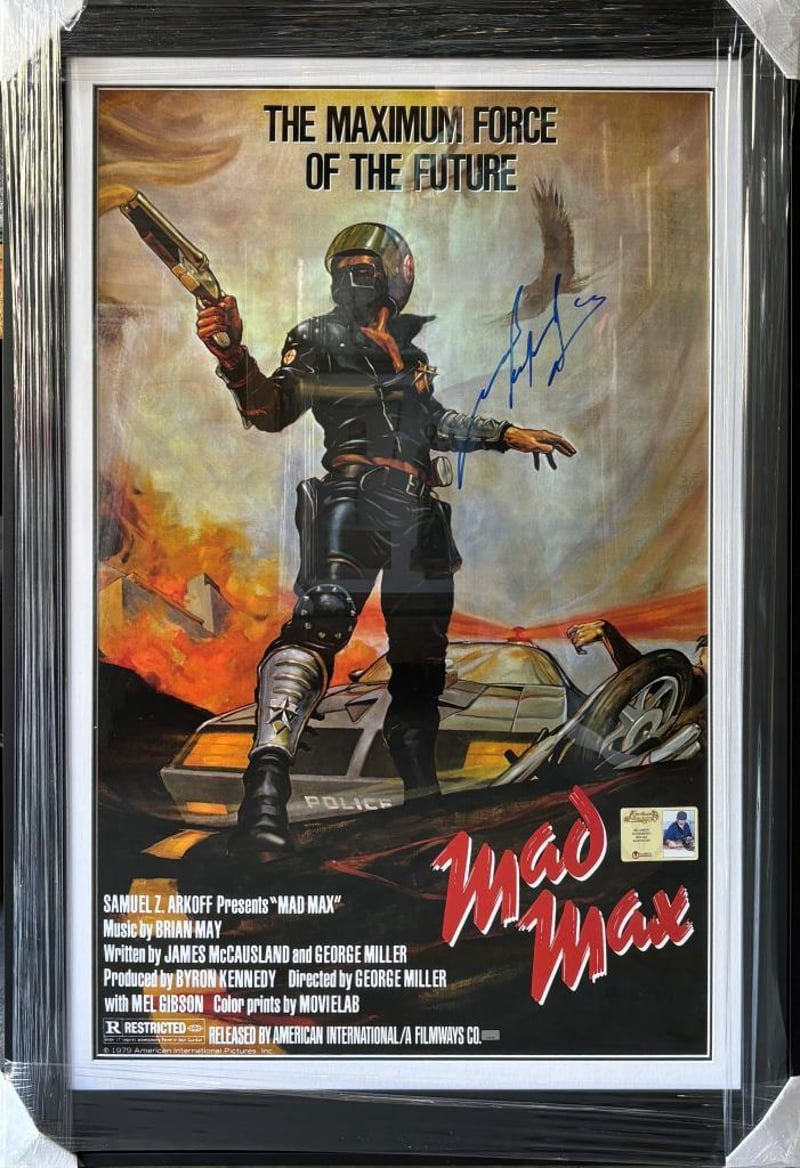 MEL GIBSON SIGNED 1979 MAD MAX 24" X 36" MOVIE POSTER FRAMED