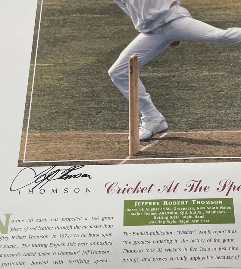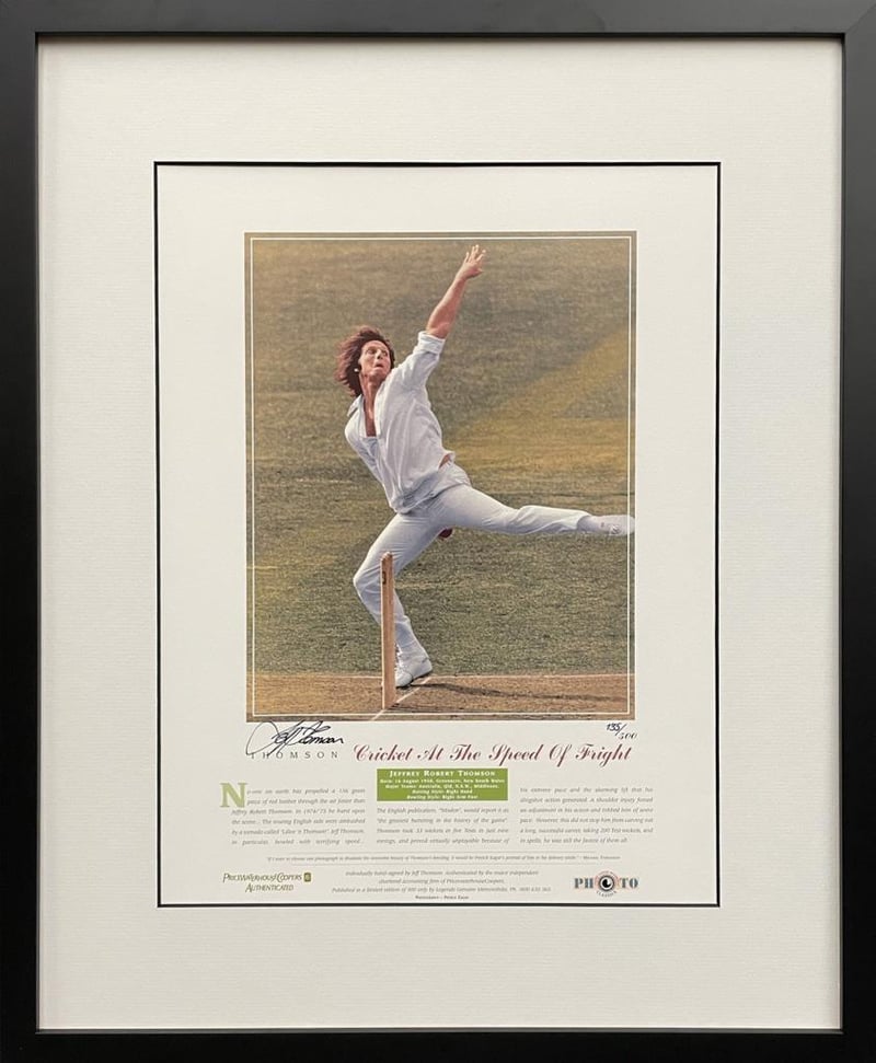 JEFF THOMSON SIGNED LIMITED EDITION "CRICKET AT THE SPEED OF FRIGHT" FRAMED