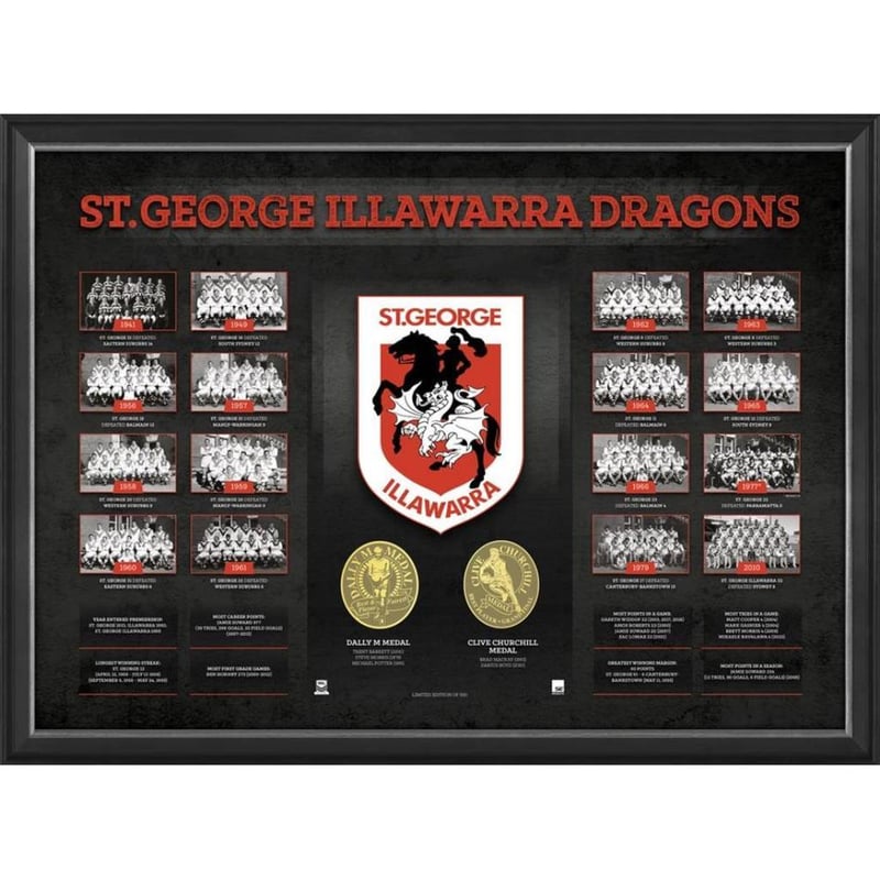 This Magnificent Piece Pays Tribute To The Rich History Of The St George Illawarra Dragons, Capturing Its Premiership History In Pictorial Detail, Along With Those Recognised As Dally M Medallists And Clive Churchill Medallists. It’S The Definitive Nod To Individual And Shared Success For All Dragons Fans And Astute Collectors.