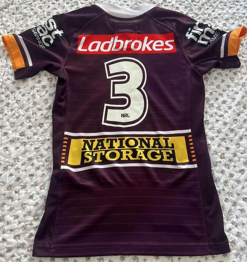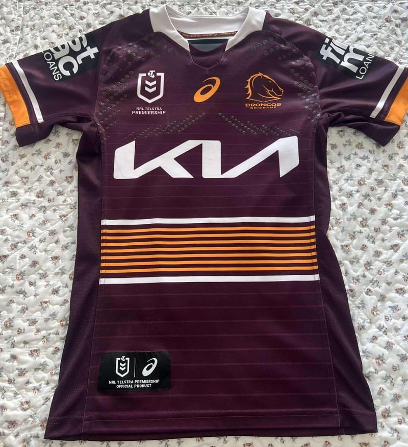 KOTONI STAGGS GAME WORN BRONCOS JERSEYKotoni Staggs, Current Brisbane Broncos Centre, Indigenous All Stars, Nsw, Tonga And Australia Representative Player.This Is A Brisbane Broncos 2022 Home Jersey Worn By Kotoni In An Nrl Match. The Item Is Accompanied By A Certificate Of Authenticity.584880+9