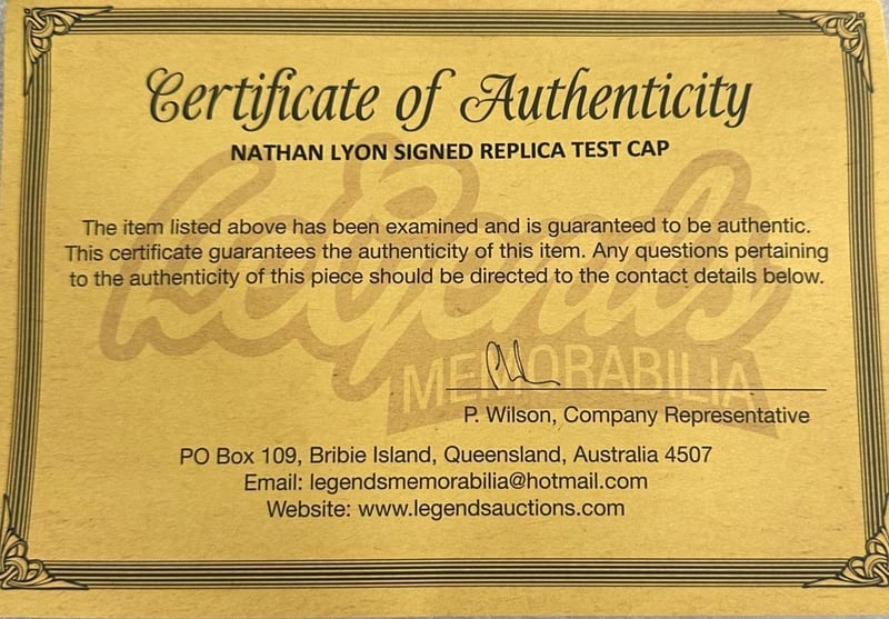 Nathan Lyon Personally Signed Replica Test Cap. Nathan Lyon Is An Australian International Cricketer. Lyon Made His Test Debut In 2011 And Plays Domestic Cricket For New South Wales. The Item Is Accompanied By A Certificate Of Authenticity.