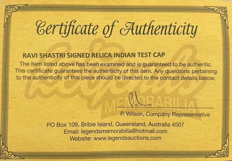 Ravi Shastri Personally Signed Replica Indian Test Cap. Ravishankar Shastri Is An Indian Cricket Commentator, Former Professional Cricketer And Former Head Coach Of The India National Cricket Team. The Item Is Accompanied By A Certificate Of Authenticity.