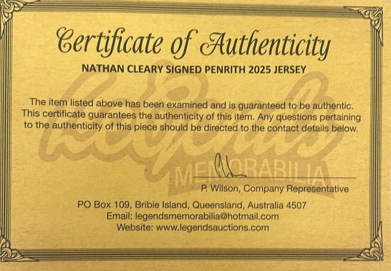 Nathan Cleary Personally Signed Penrith Panthers Jersey. Nathan Cleary Is An Australian Professional Rugby League Footballer Who Captains And Plays As A Halfback For The Penrith Panthers In The Nrl. The Item Is Accompanied By A Certificate Of Authenticity.